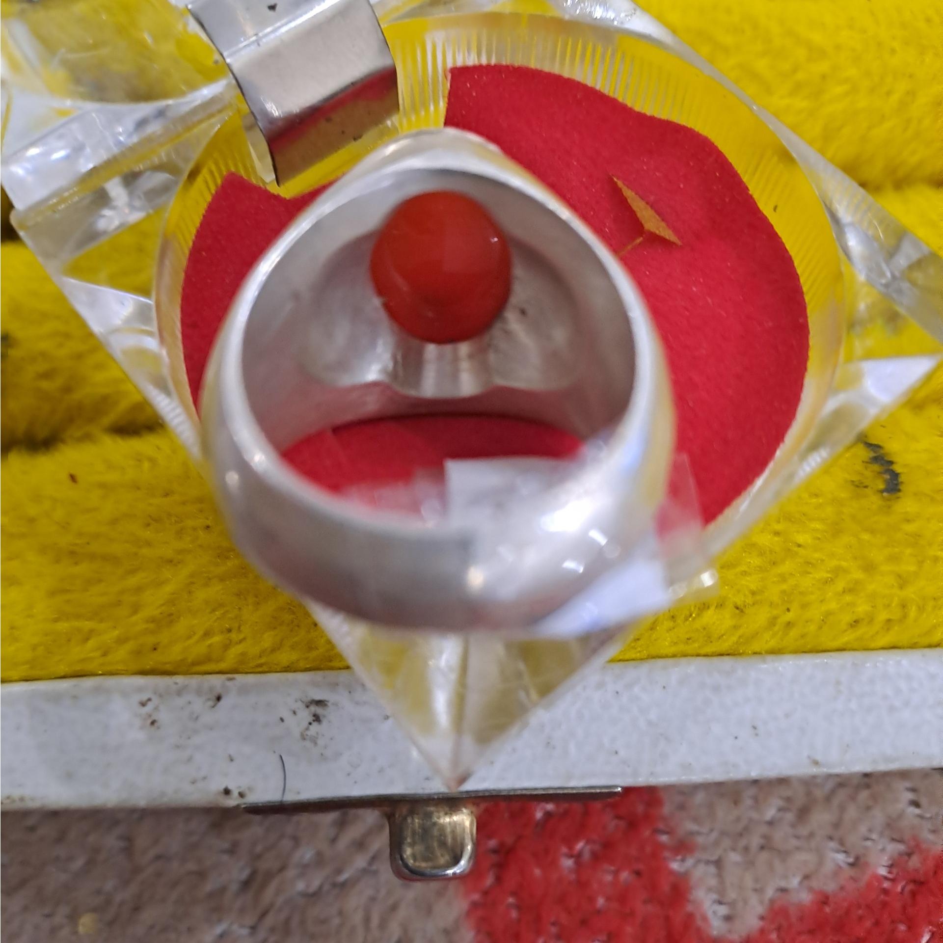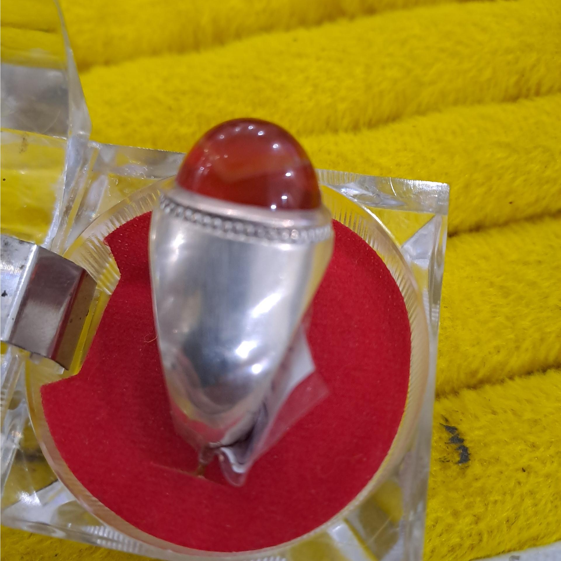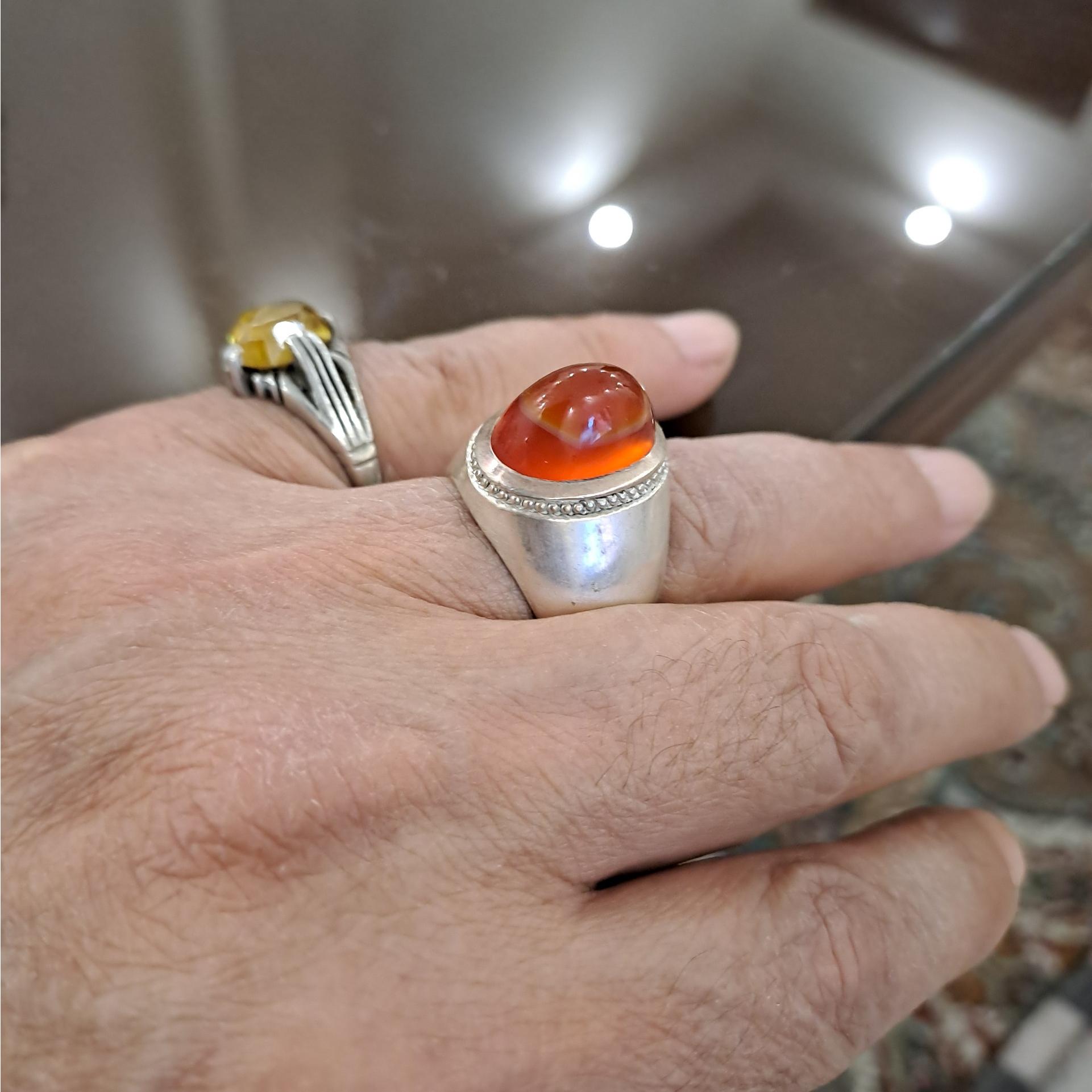 انگشتر عقیق پرتغالی رگه دار تراش عبدالرزاقی رکاب فیلی استاد بصیری سایز 60 وزن 23/56 گرم