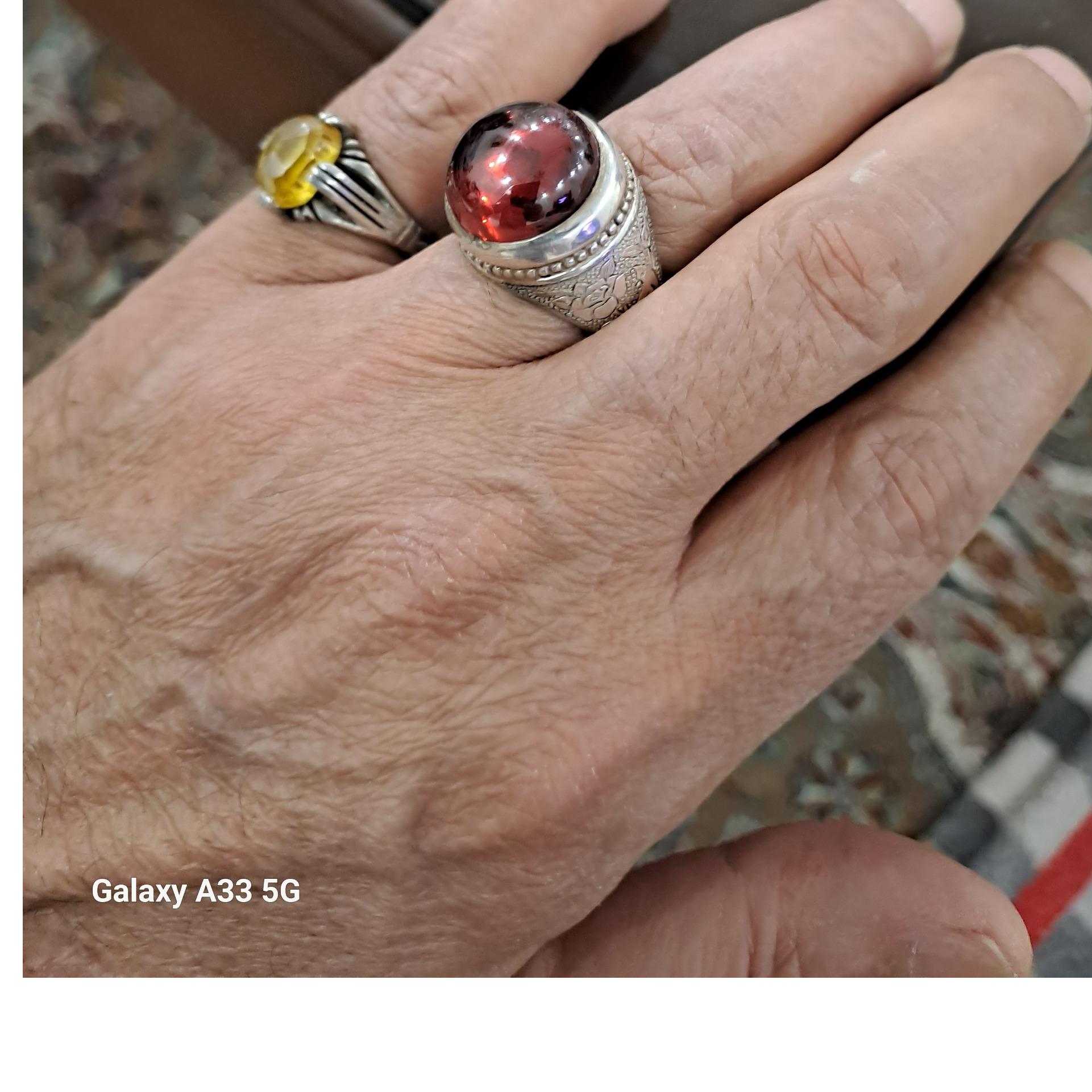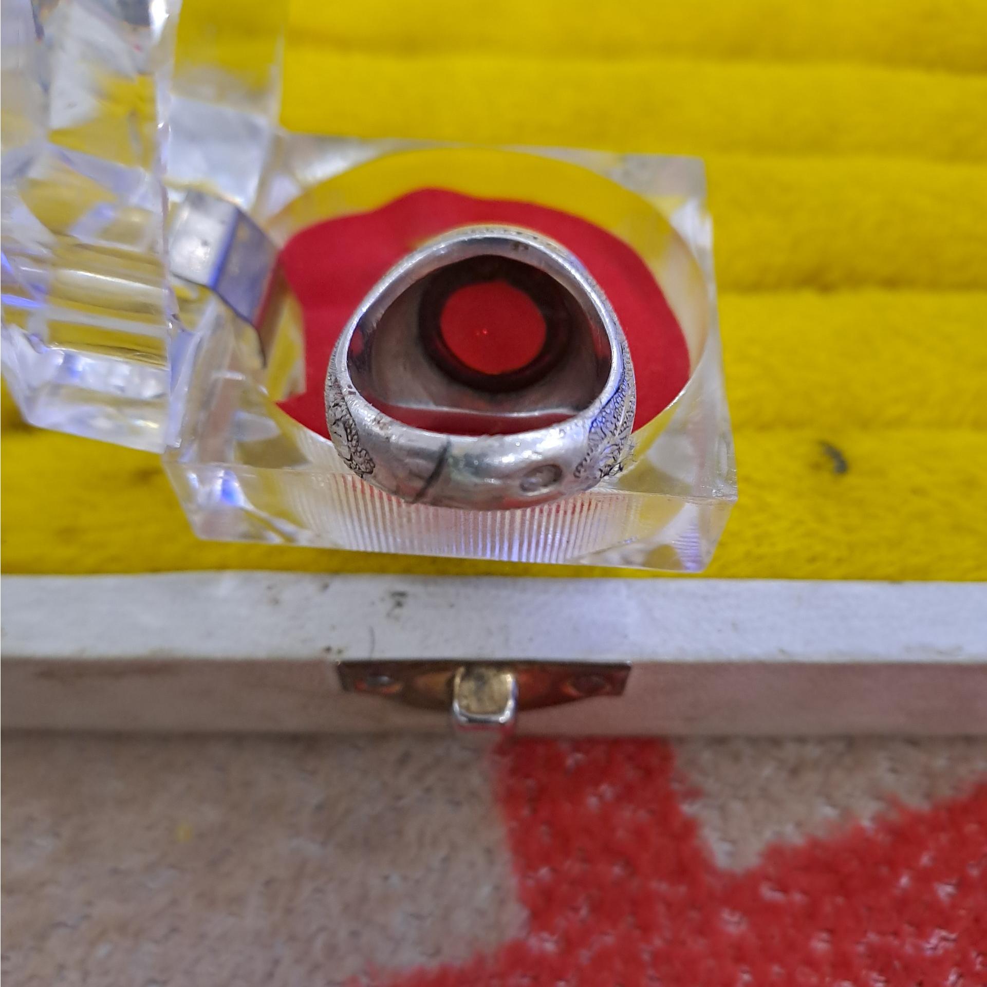 انگشتر لعل سرخ رکاب دستساز قلم کاری سایز 60 وزن 22/57 گرم