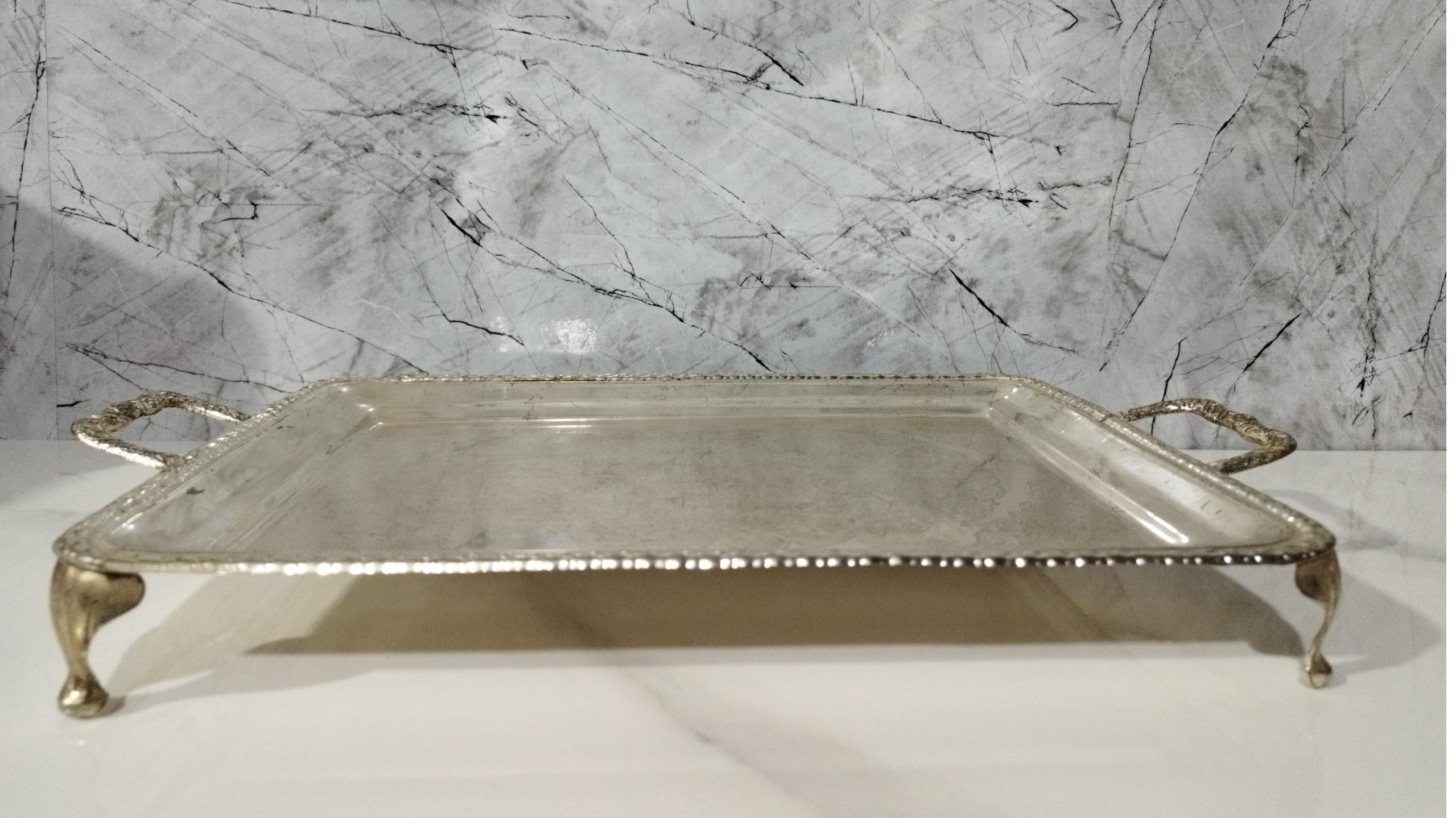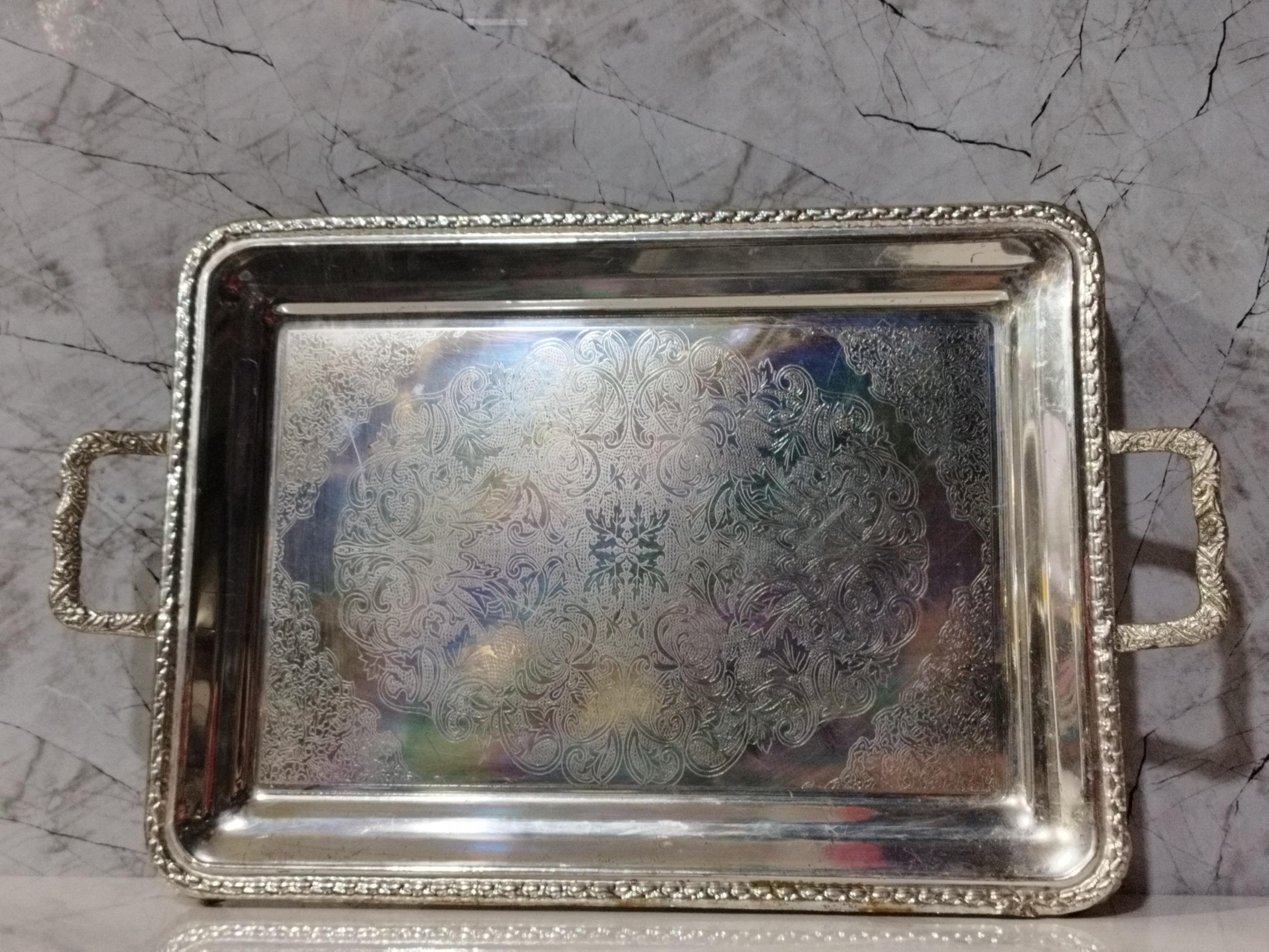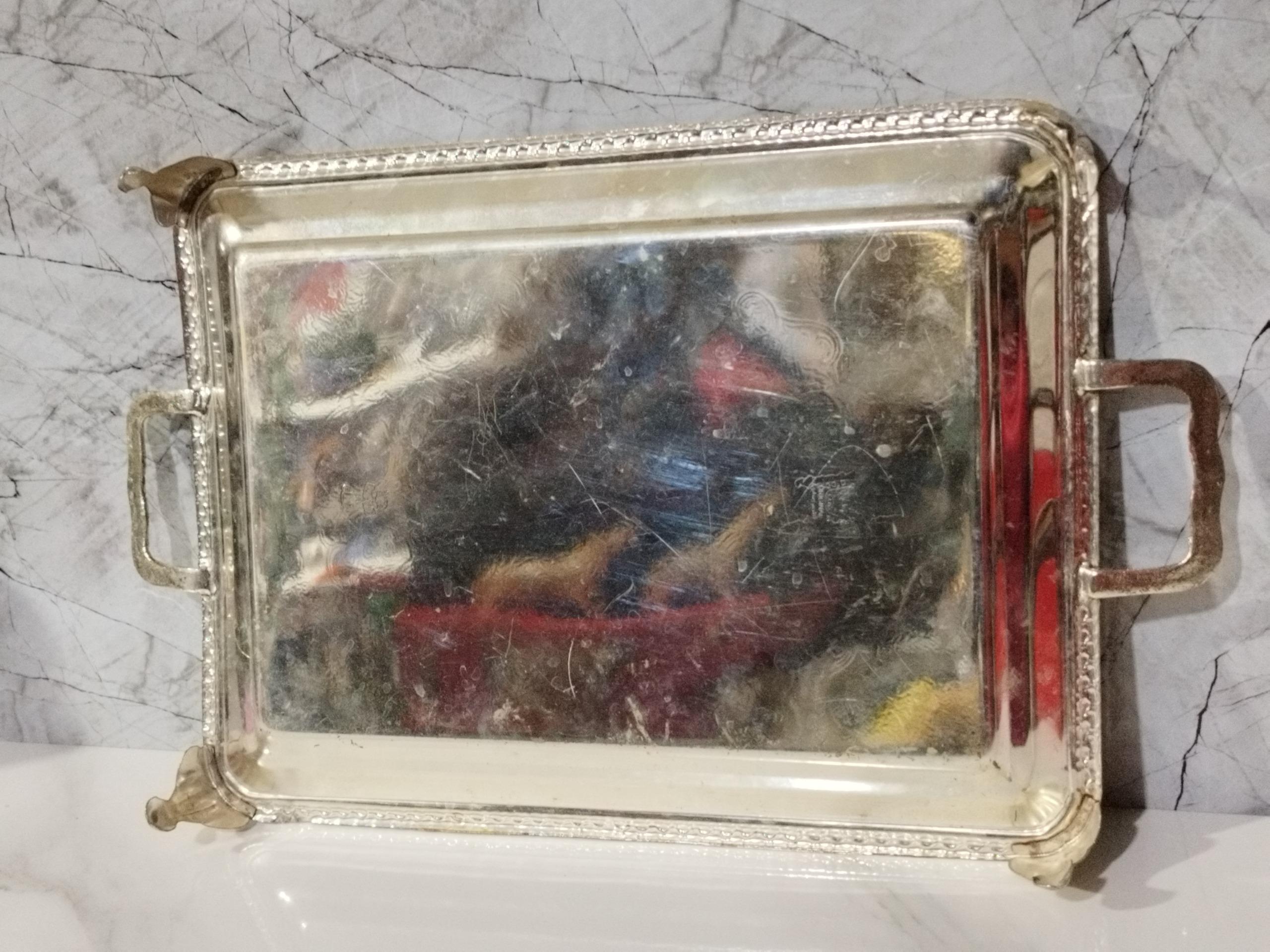 سینی قدیمی طرح دار ،روکش نقره و مارک دار