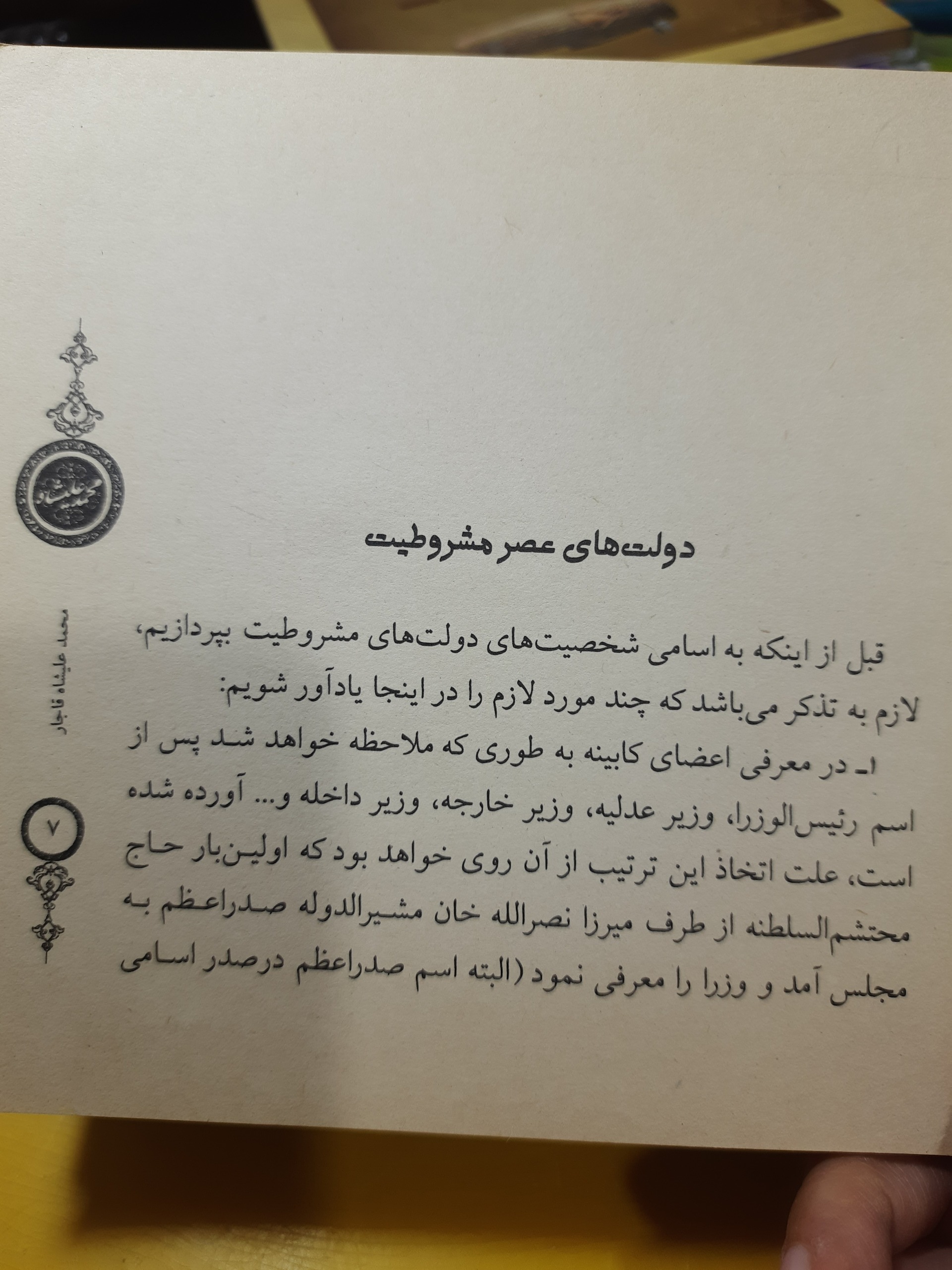 کتاب محمدعلی شاه قاجار و دولتهای عصر مشروطیت انتشارات گنجینه تاریخ ایران چاپ اول سال 89 سایز خشتی جلد رقعیامضای فرمان مشروطیت، بهوسیلة مظفرالدین شاه، توفانی از حوادث را در پی داشت که مرگ وی و جانشینی ولیعهد مستبد، محمدعلیشاه، آن را تشدید کرد. در این کتاب به شرح وقایع آن دوره پرداخته شده و رویدادهای مهم عصر مشروطیت معرفی گردیده است.