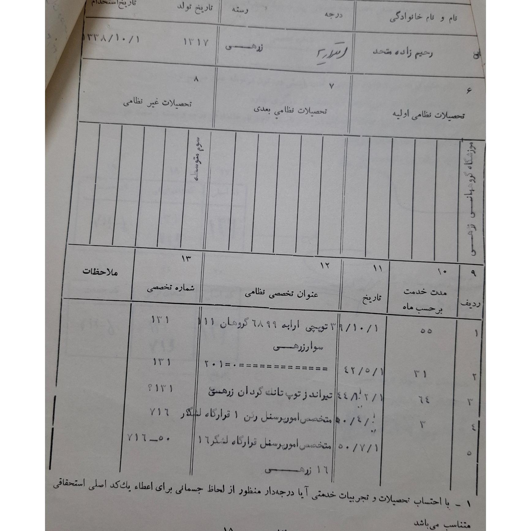 دستورنامه لشکر 16 زرهی مخصوص مربوط به استوار دوم علی رحیمزاده متحد