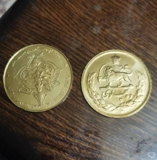 2عدد سکه برنجی بزرگ ده پهلوی و فرح سرز