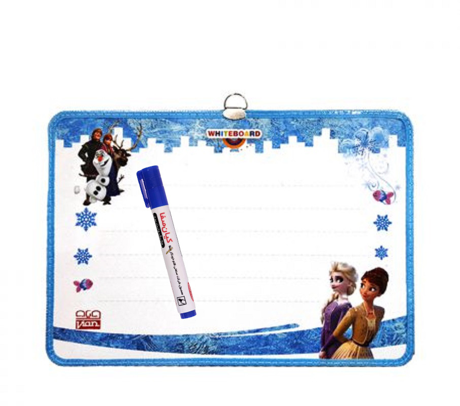 تخته وایت برد بزرگ فانتزی در طرح ها و رنگ های متنوع و متفاوت و قشنگی و در ابعاد 34 × 48 میباشد و همچنین همراه با یک ماژیک وایت برد آبی رنگ نیز میباشد.