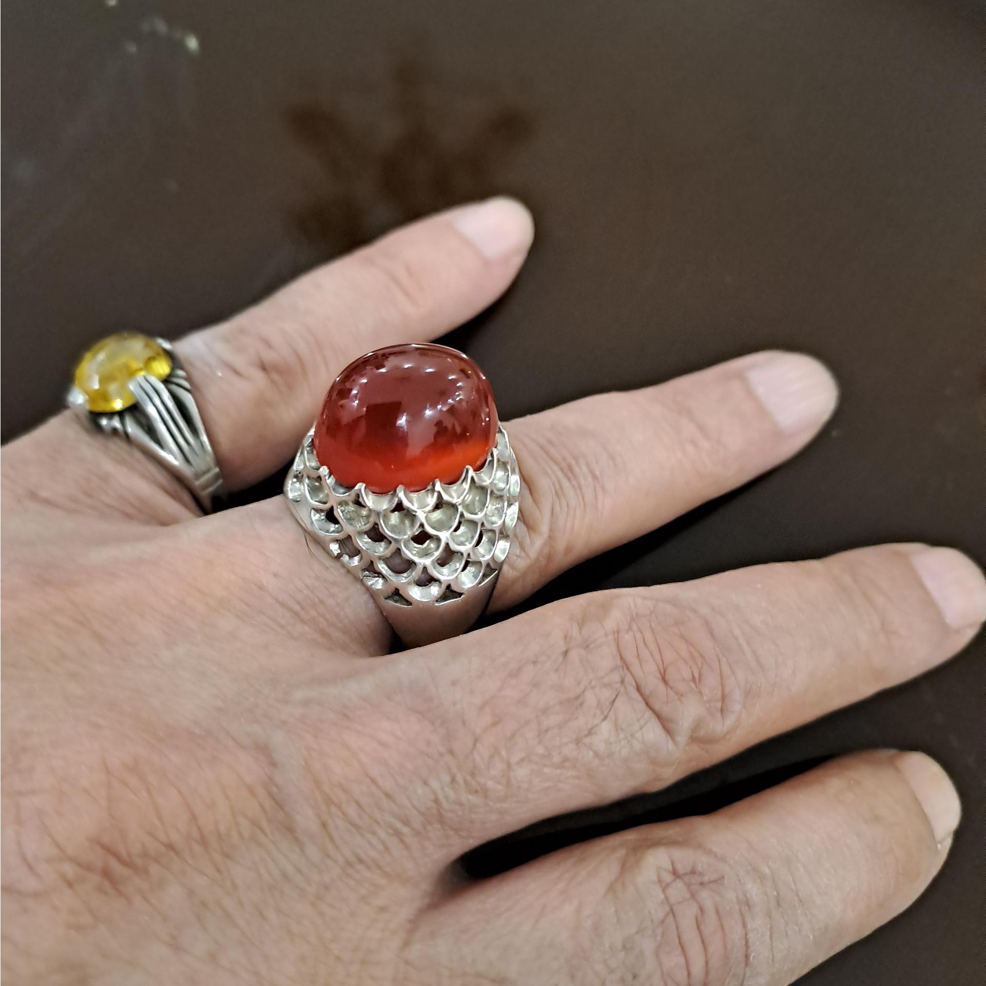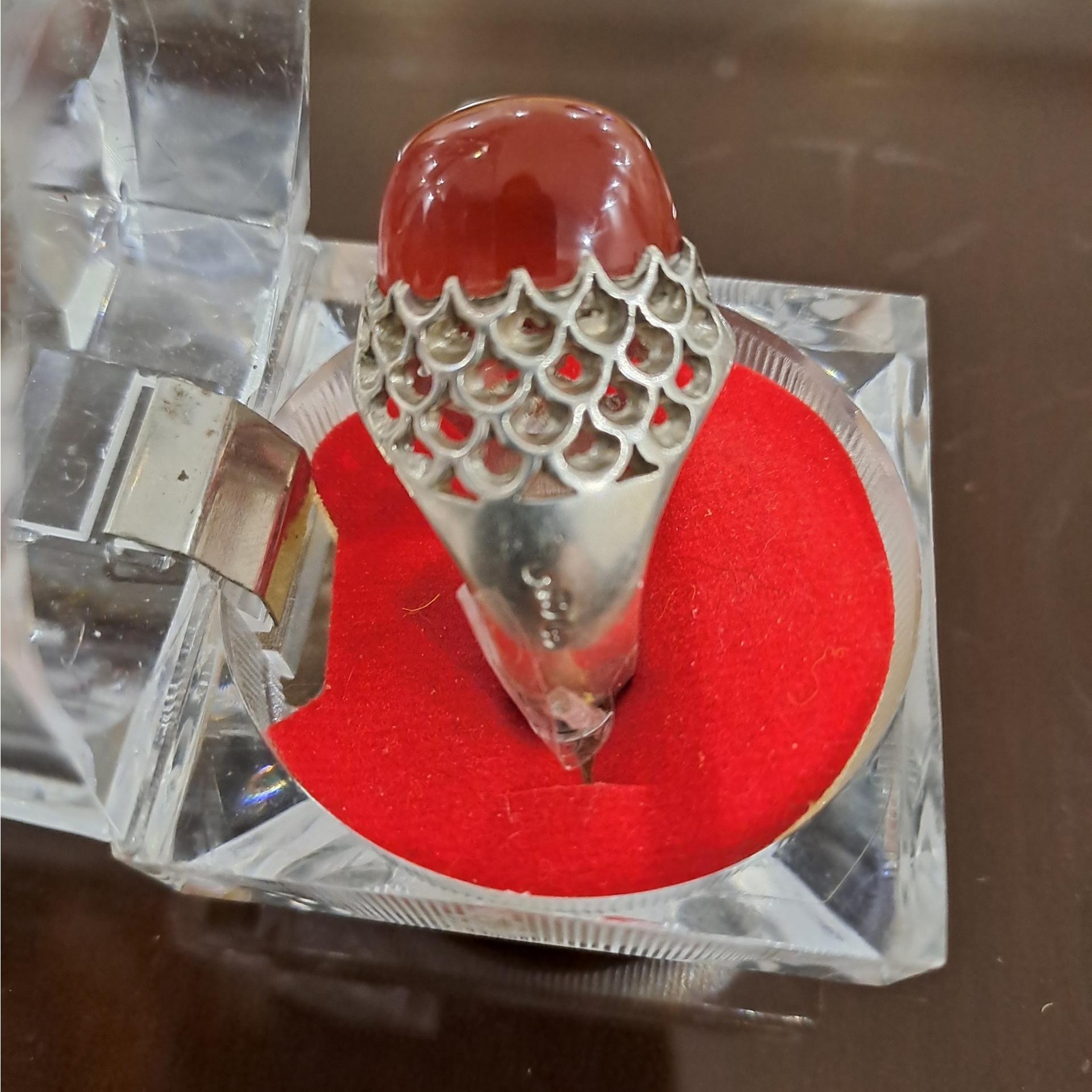 انگشتر عقیق گنبدی رکاب دستساز پولکی استاد هاشمی سایز 63 وزن 16/26