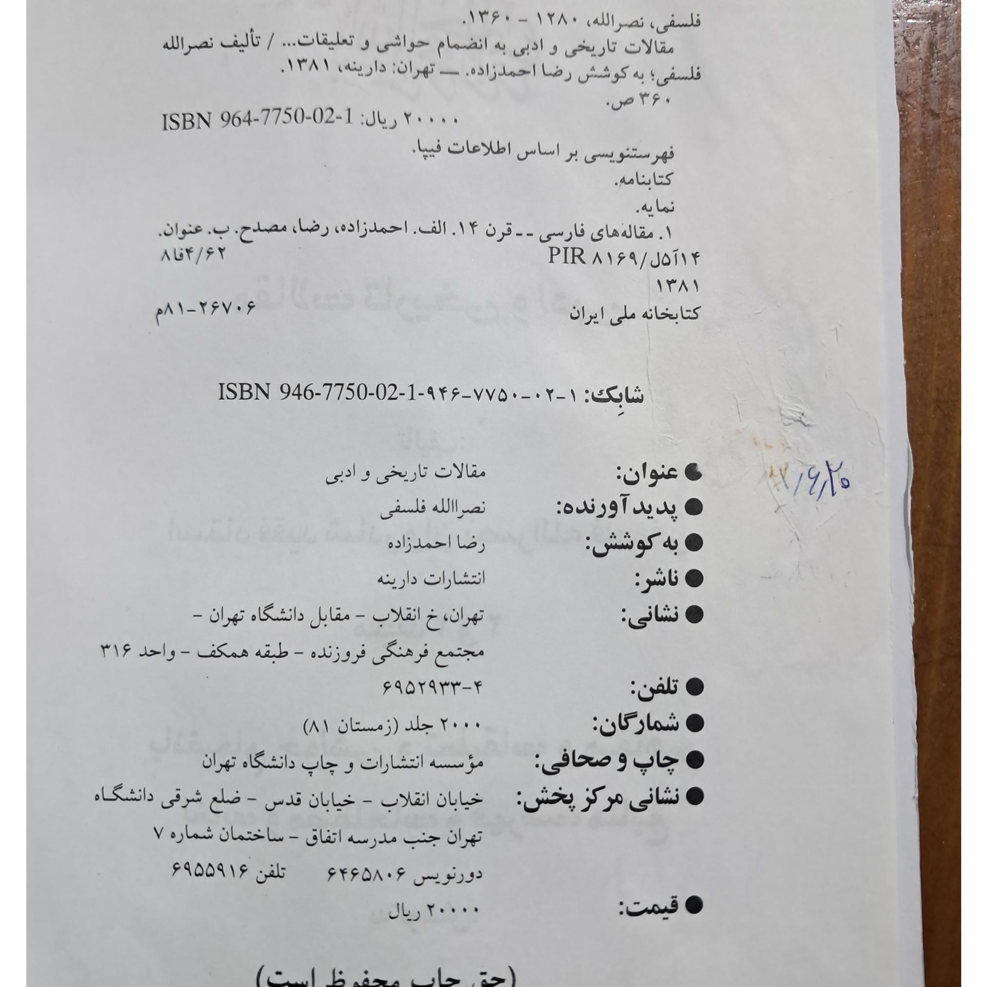 مقالات تاریخی و ادبی (نصرالله فلسفی)