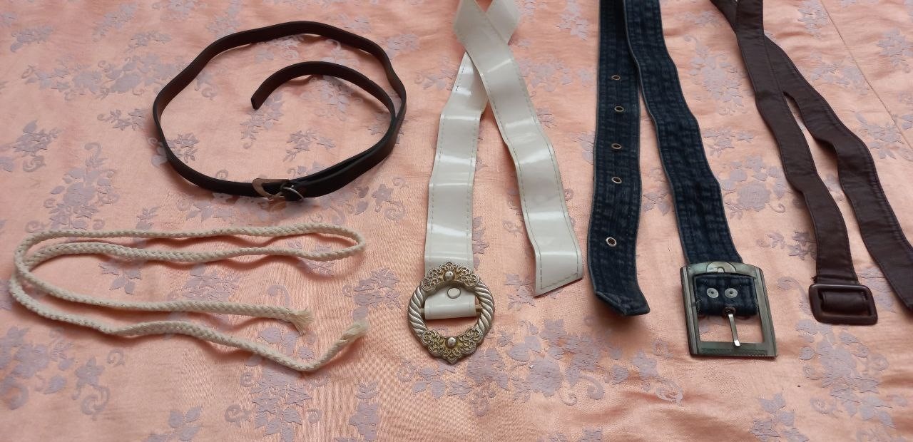 یک عدد کمربند سفید با سگک زیبا قدیمی هست