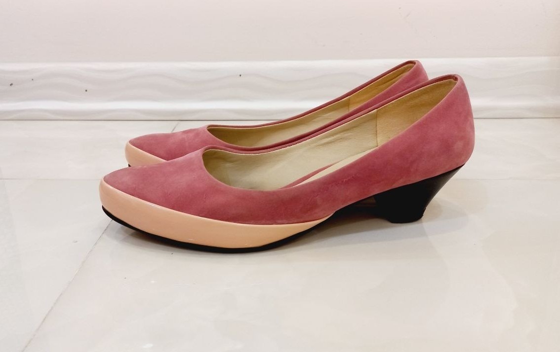 اندازه های کفش صورتی( تصویر سوم): سایز کفش 40 هست. کف کفش 26 سانت هست. و 4 سانت پاشنه دارد. برای سایز 39 و 40 مناسب هست. بسیار کفش راحتی هستش. فقط یکبار یک مجلس پوشیدم و داخل کمد بوده در اثر گذر زمان کناره یکی از لنگه کمی جیرش شکسته و کناره های کفش اگر با دست فشار بیاری به سمت داخل جیرش جدا شده که داخل پا و در حالت پوشیده اصلا مشخص نیست ولی این نکات رو برای افراد حساس گفتم