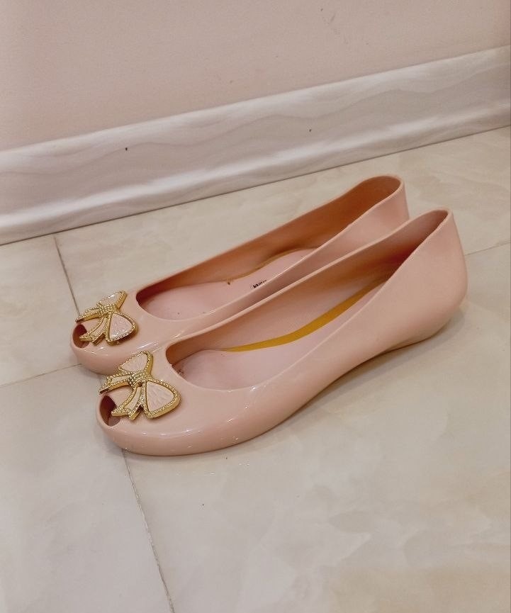 اندازه های کفش ژله ای یا سیلیکونی ( تصویر پنجم): سایز کفش 40 هست. من فقط یکبار پوشیدمش و بعد در کمد بوده در اثر گذر زمان یکی از کفش ها کناره اش کمی پاره شده ولی مشکلی در پوشیدن ایجاد نمی کنه