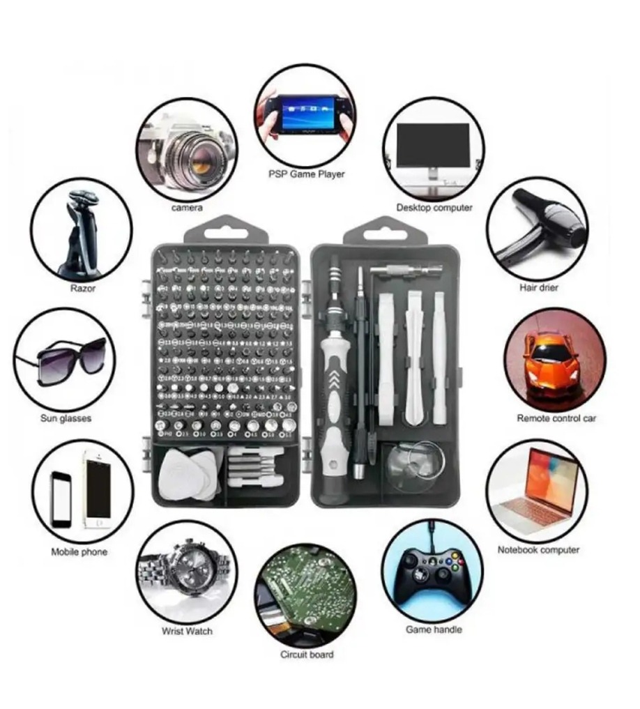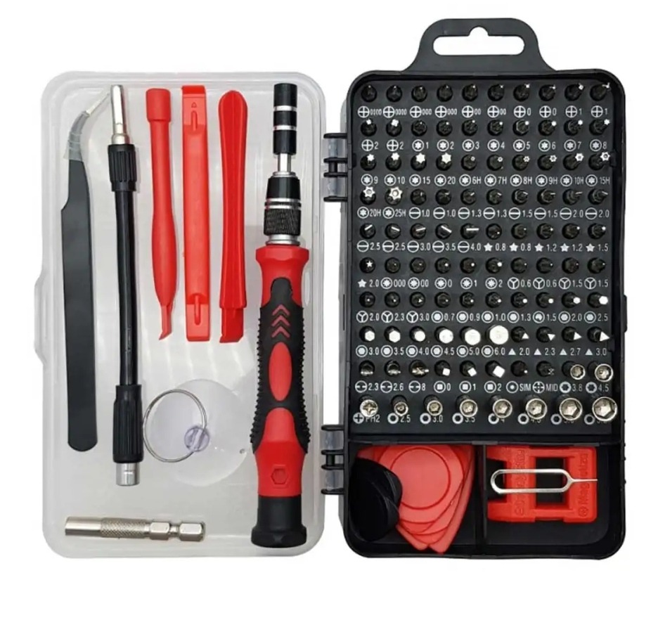 ست حرفه ای پیچ گوشتی و قاب بازکن موبایل شامل 100 سری پیچ گوشتی و همچنین پنس و مضراب و قاب بازکن