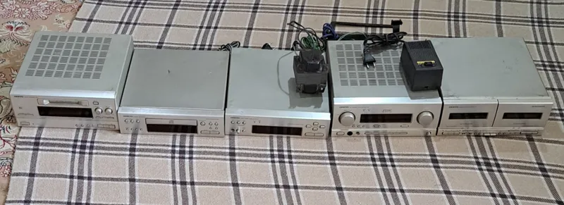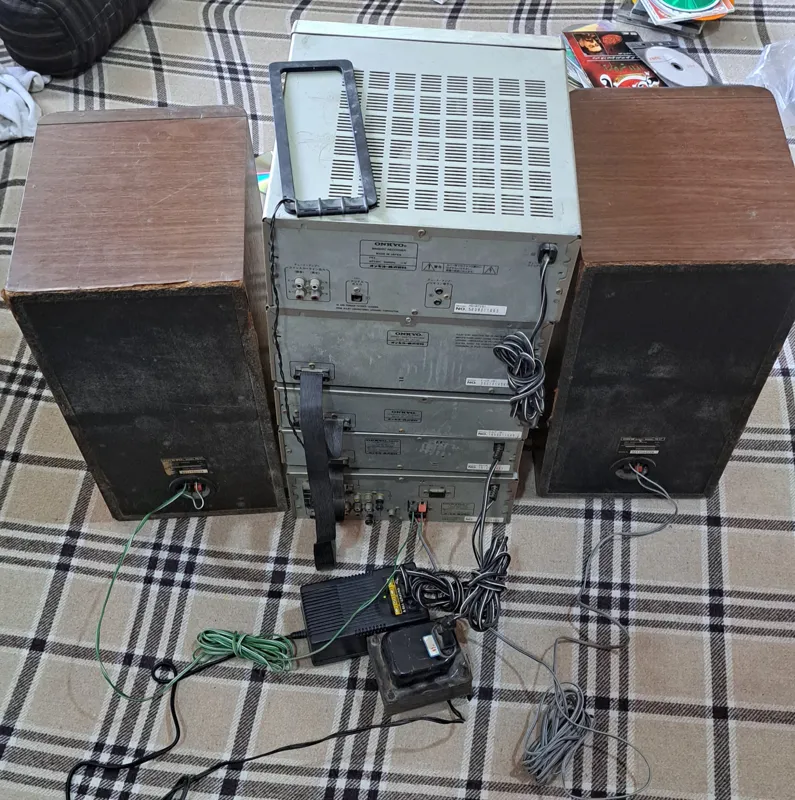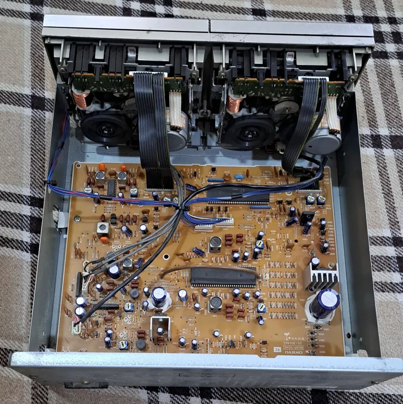 آمپلی فایر انکیو اصل ژاپن برق 110 که 2عدد ترانس همراهش هست ودارای دو باند مخصوص اصلی انکیو از طبقه پائین ردیف 1و2 آمپلی فایر طبقه 3سی دی طبقه 4ضبط نوار کاست طبقه 5 آم دی ونوار مخصوص کوچک. این دستگاه را حدود 15 سال پیش از مشهد البته از تایبات خریدم وحدود 14 سال هم بدون استفاده در منزل بوده آمپلی بسیار قوی وقدرت مند دارد و اگر صدای باند رازیاد کنید باندها توان آن را ندارند وخانه را به لرزه در می آورند ویکی از باندها چون نمی دانستم به دلیل بالابردن صدای زیاد کمی باز شده که با چسب چسباندم ومشکل ایجاد نمی کند ودارای 2عدد ترانس 110 ولت هست ودارای یکعدد کنترل با کیفیت که همه امکانات را دارد وحتی اگر بتوانید تلویزون وهر دستگاهی به این مدل را تهیه کنید کار میکند ضبط وام دی سرویس میخواهد البته این را بگویم کل دستگاه حتماباید توسط یک سرویس کارو استاد کار ماهر انجام شود این دستگاه نباید دست هر کسی سپرده وسرویس یا تعمیر شود من بعد از 15 سال برای اولین بار روشن کردم ودستگاه را اگر در تصویر ملاحظه کنید روشن گذاشتم ودارد سی دی را اجرا میکند شاید ایراد جزئی باشد وحتما باید سرویس شود قیمتی که گذاشتم فقط پول باندها وکنترل و2 عدد ترانس هست باز هم عرض میکنم این دستگاه یک سرویس جهت ضبط کاست وام دی لازم هست اما آمپلی قدرتمندی داردکه من در جای سراغ ندارم بزرگواران توجه کنید این دستگاه به دلیل خواب حتما نیاز به سرویس توسط استاد کار ماهر وزبر دست وسالم را دارد قبل از خرید حتما مشورت کنید تا نگرانی پیش نیاید به دلیل حساسیت کار دقت کنید