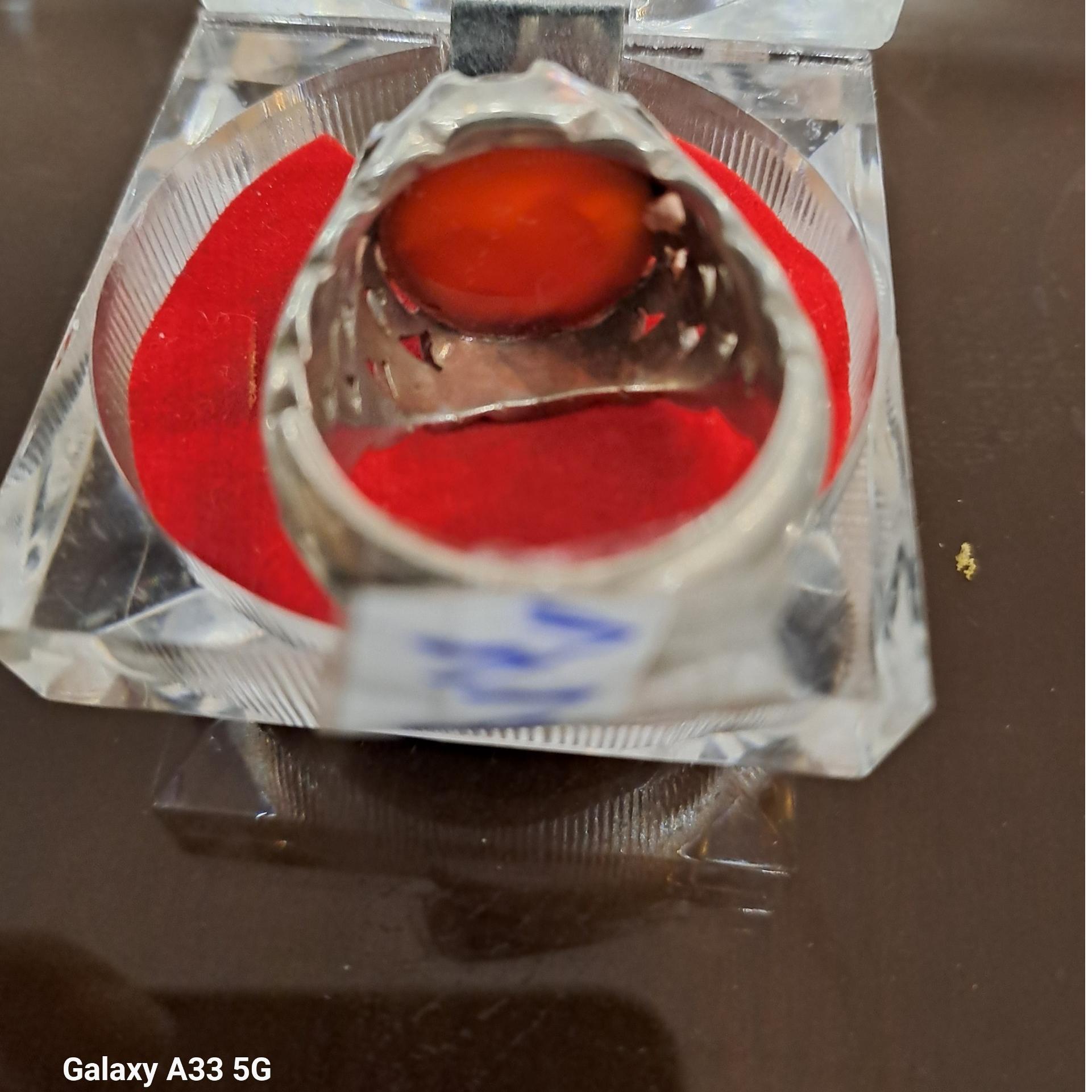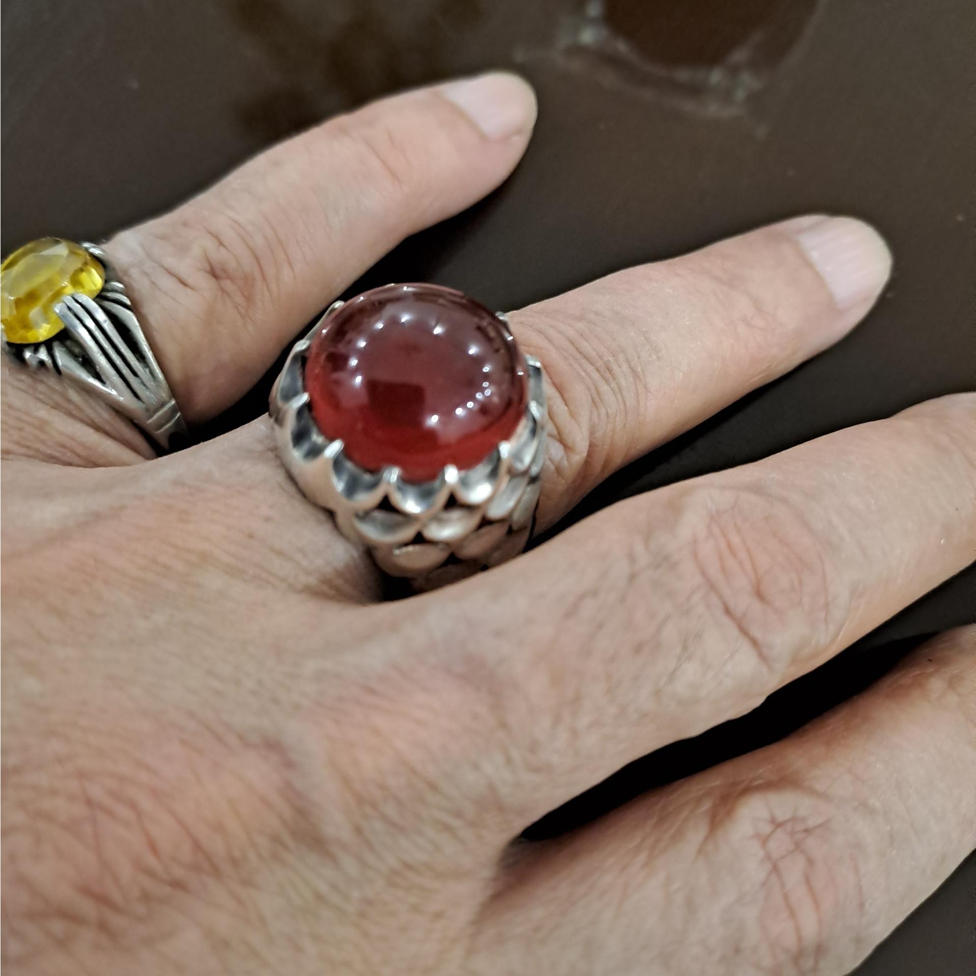 انگشتر عقیق خوشرنگ و آبدار رکاب پولکی دستساز استاد عادل سایز 62 وزن 19/77 گرم