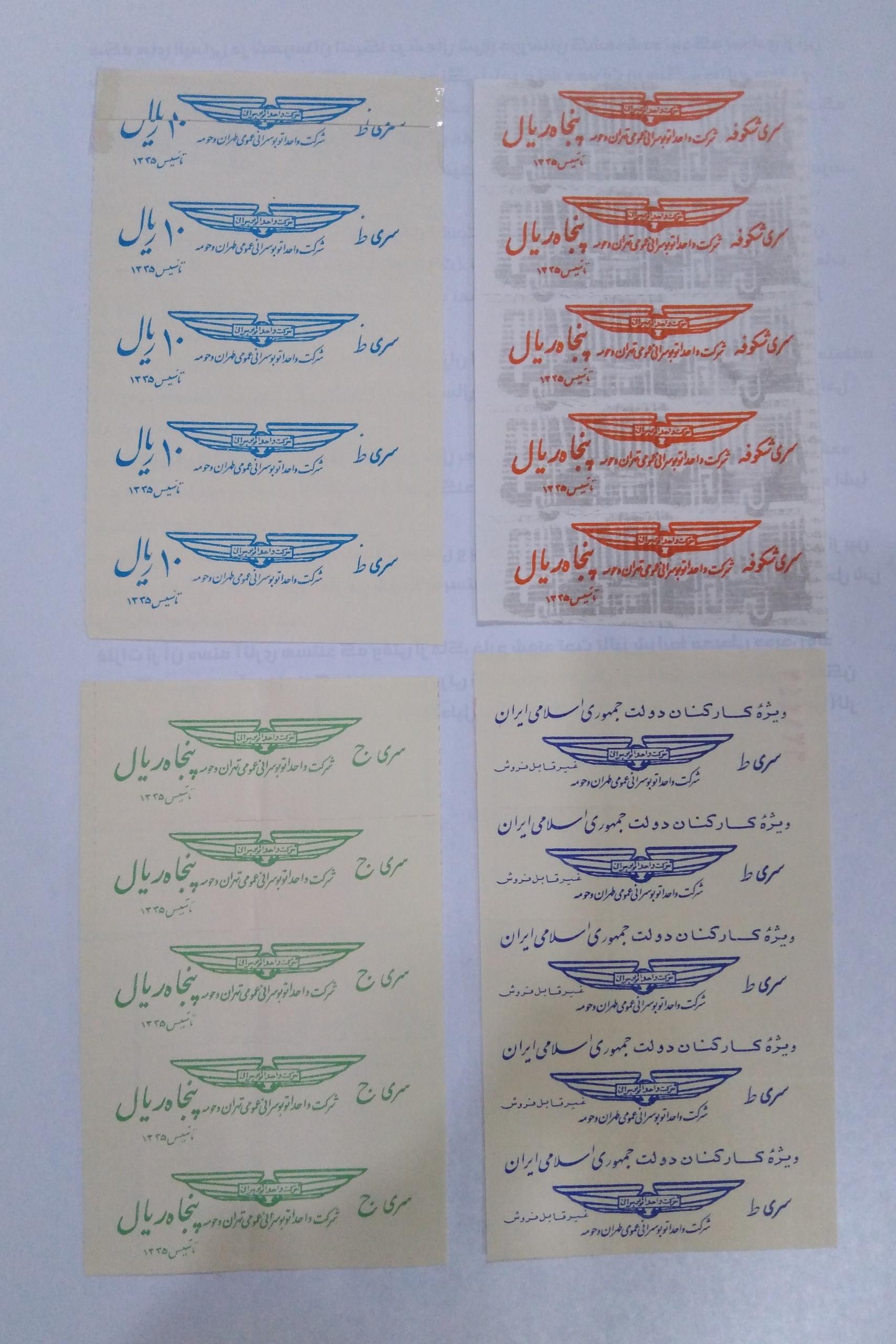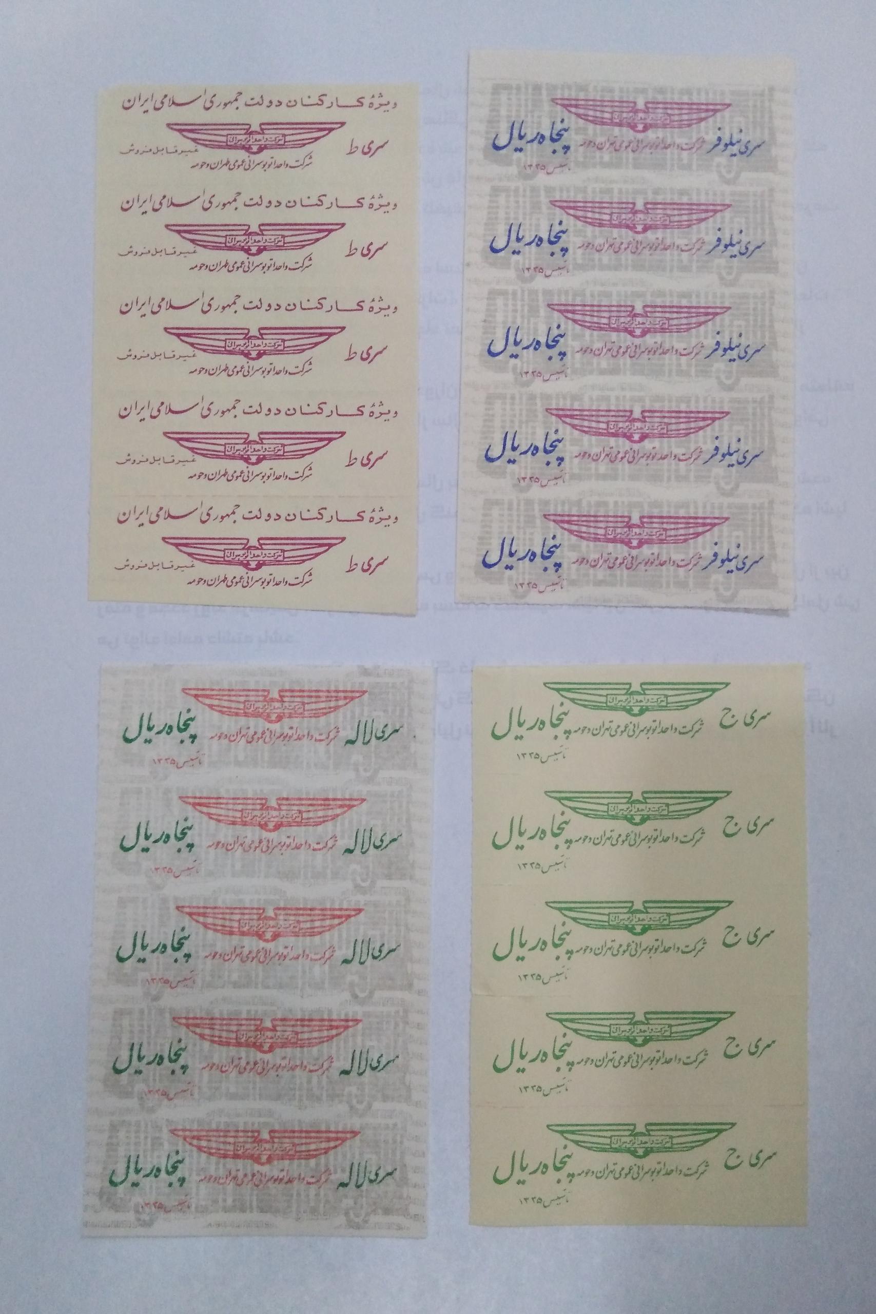 70 عدد بلیط اتوبوس واحد با تکرار توجه یکی شون چسب خورده