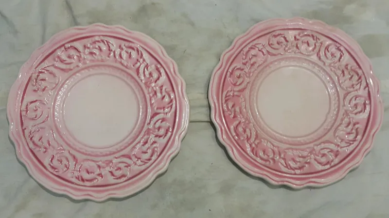 دو عدد بشقاب قدیمی دست ساز قاجاری سالم