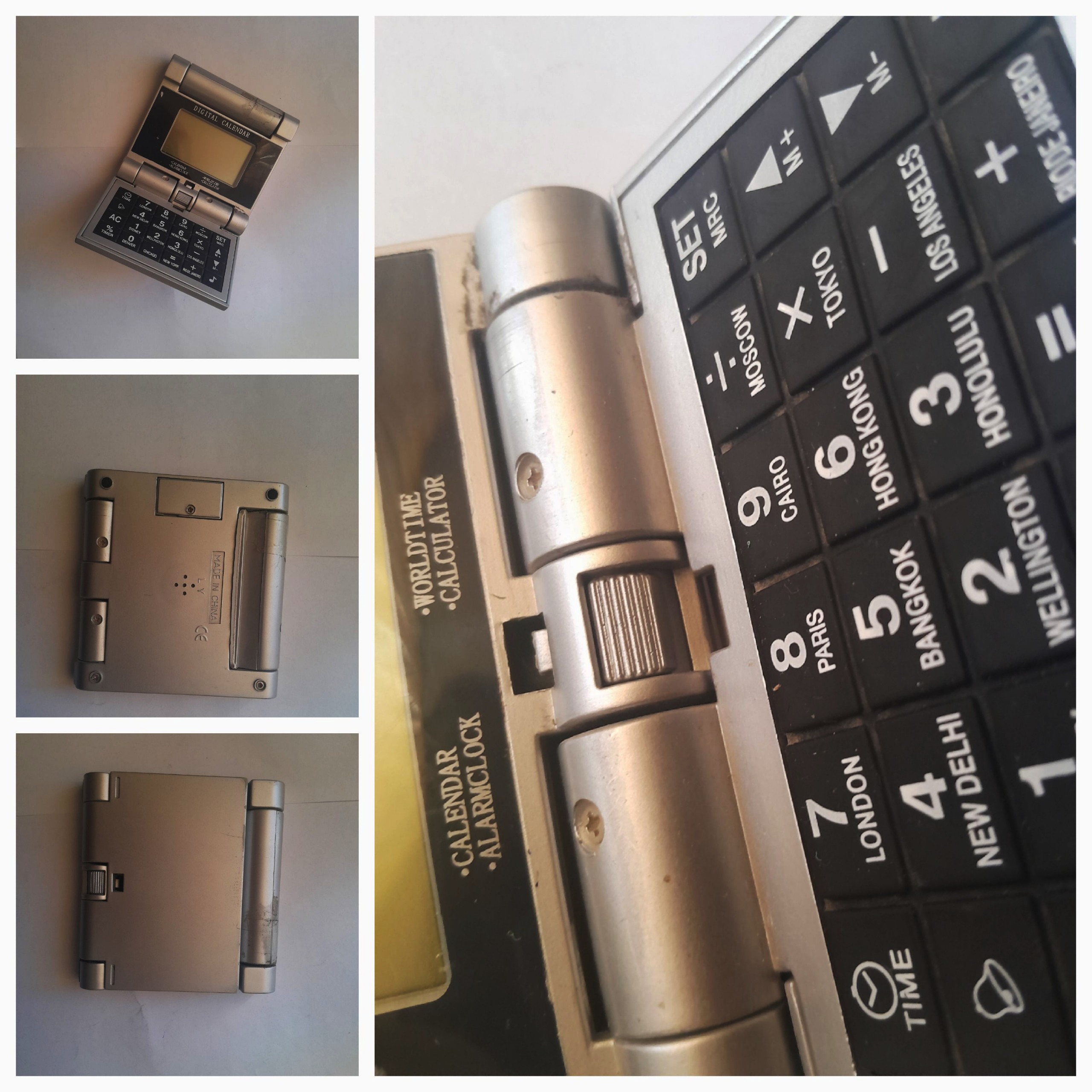 سالم است و فقط نیاز به باتری دارد و مطابق تصویر پشتی نگه دارنده کنده و گم شده است |