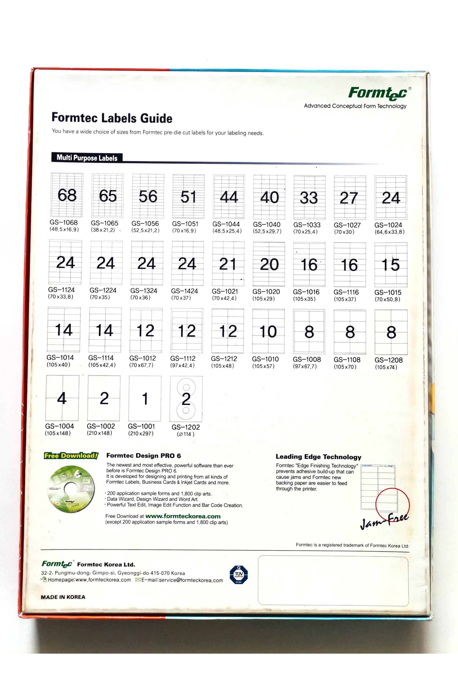 لیبل قابل چاپ (95 از 100 برگ) Formtec