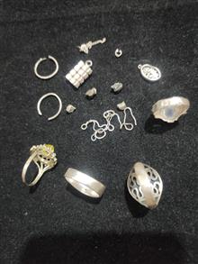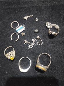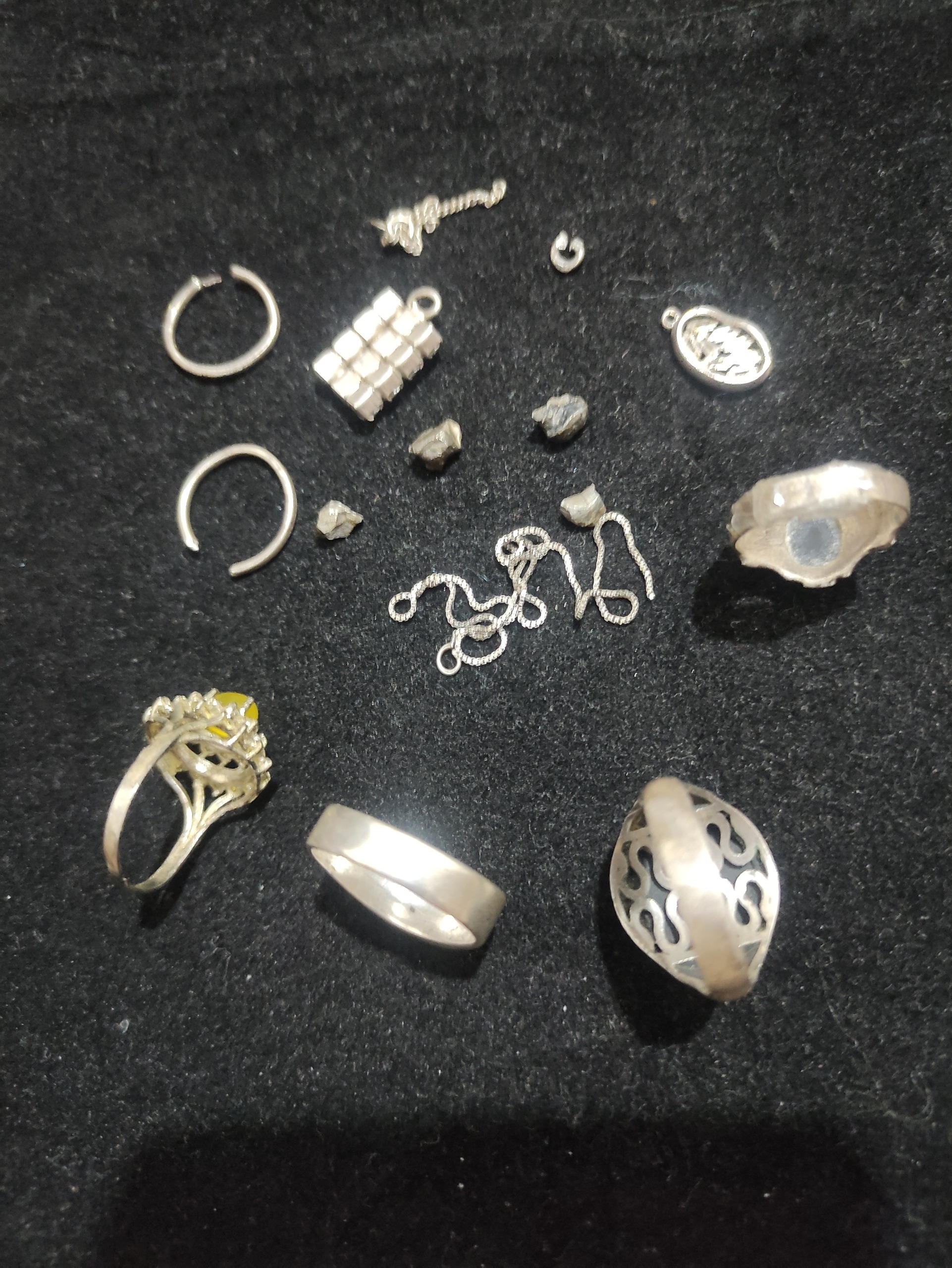 نگشتر بزرگ نقره عیار 925 انگشتر دهانه مربعی انگشتر زنانه نقره که سوریه آوردن روکش رادیوم زیر عیار 925 حک شده انگشتر مردانه وسط برش زدن ولی چسب زدن قابل استفاده بشه عیار 90 4 قطعه نقره ذوب شده یک آویز نقره بیضی یک