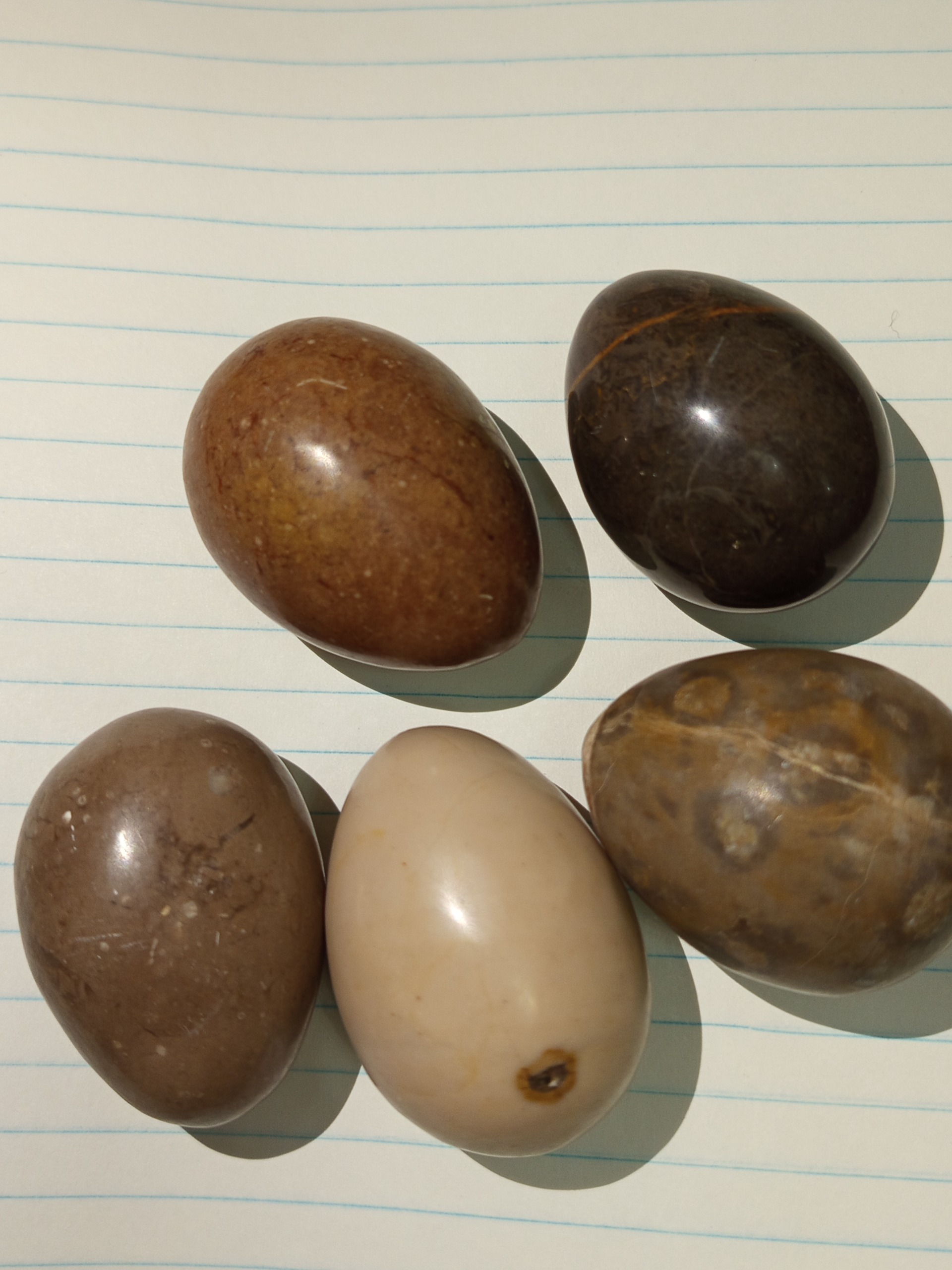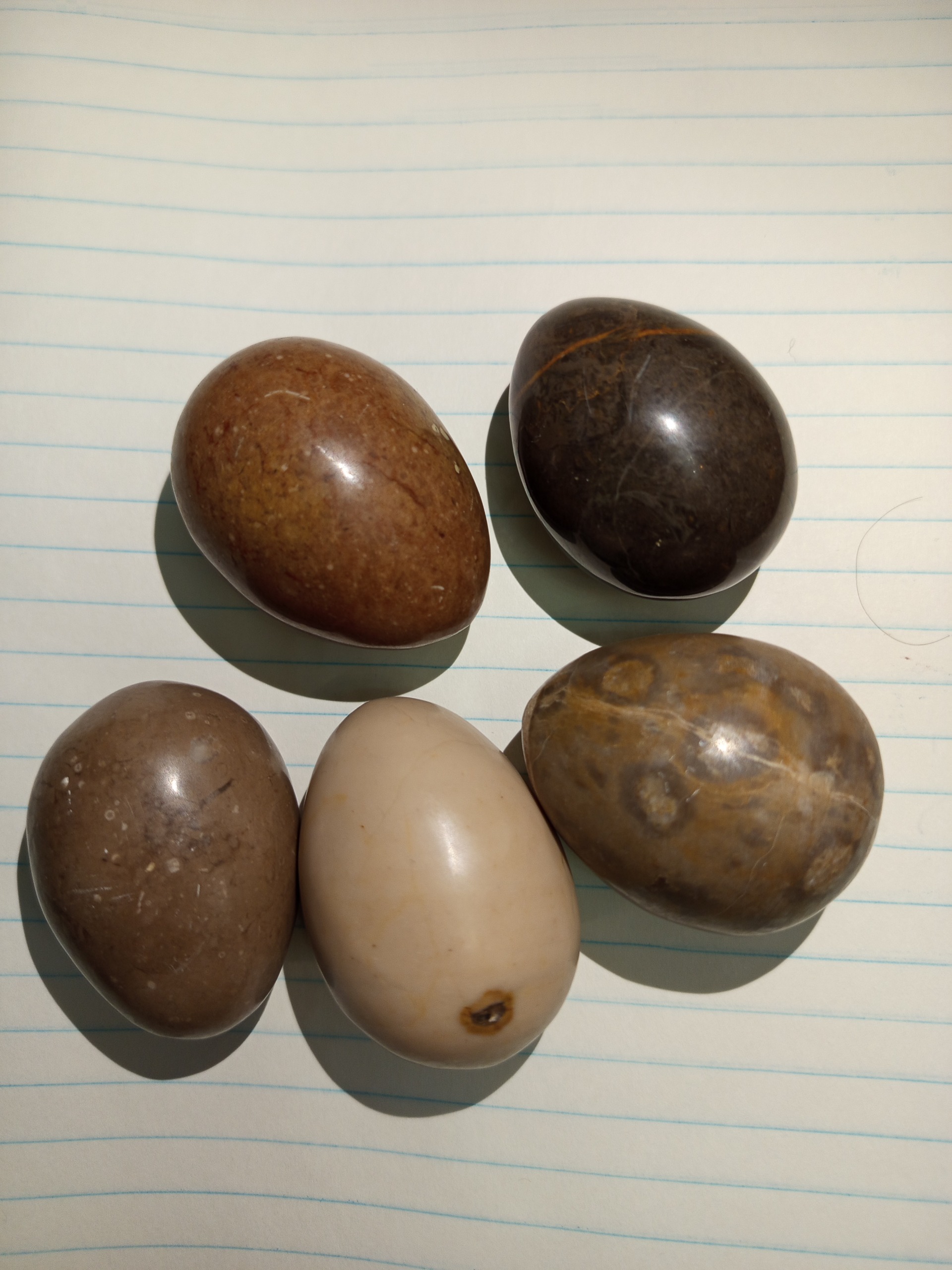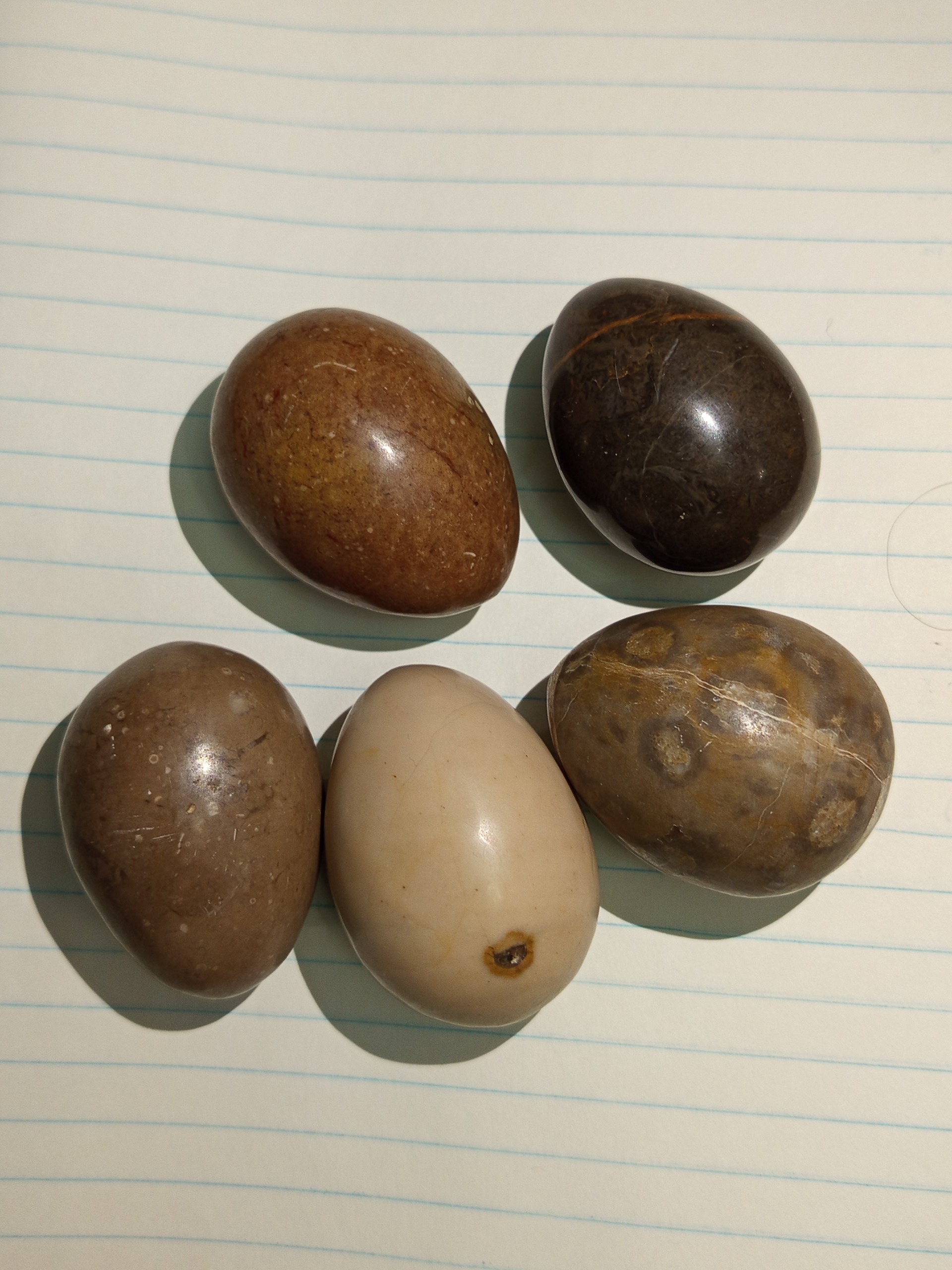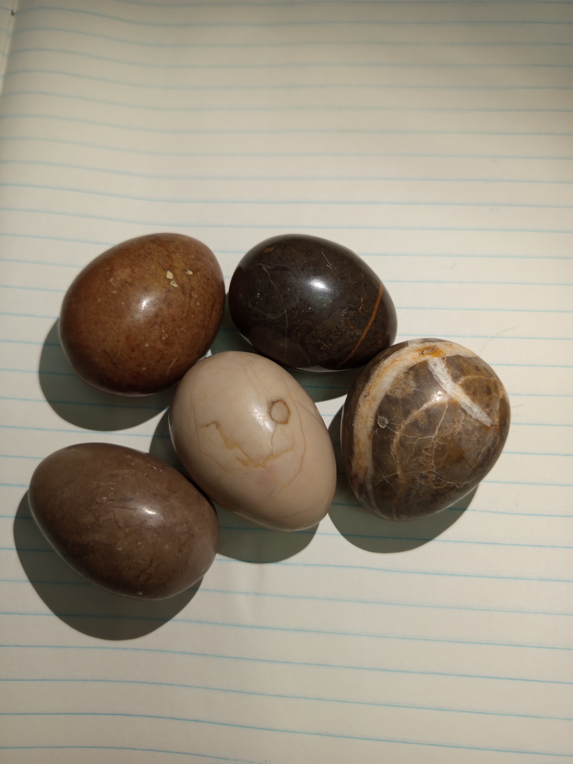پنج عدد سنگ تراش خورده با جنسهای مختلف به احتمال زیاد جنس آنها جاسپر یا مرمر هستند