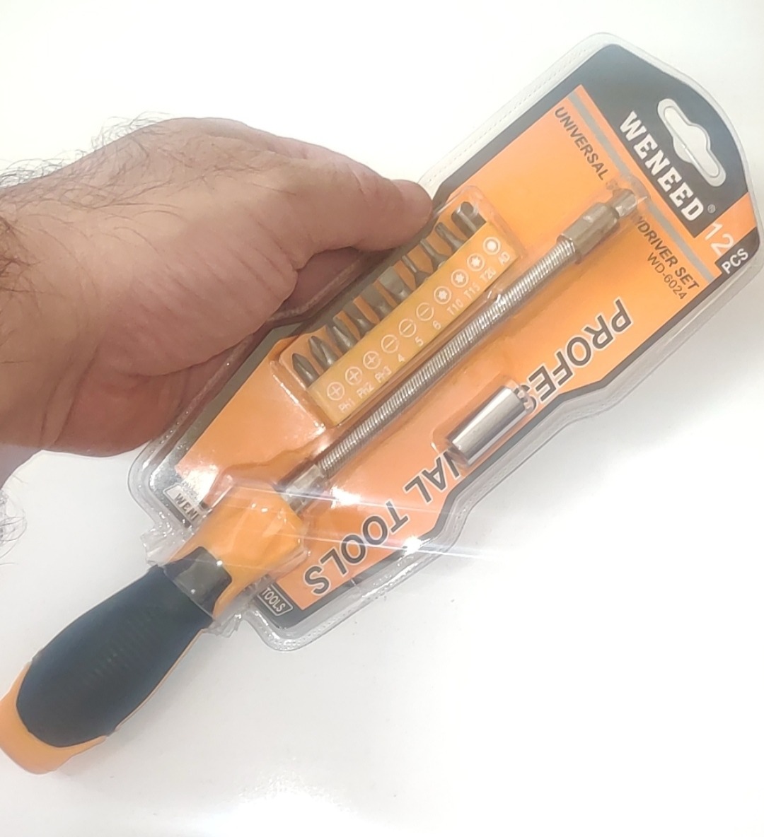 ست پیچ گوشتی دسته فنری 12 عددی شامل :