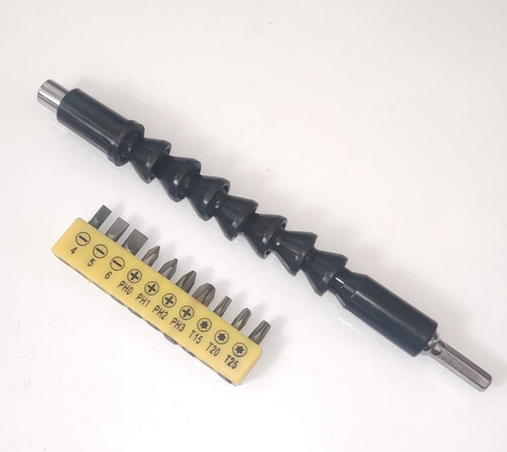 ست رابط و سری پیچ گوشتی شارژی شامل یک رابط منعطف و 10 عدد سری پیچ گوشتی در شکلهای مختلف