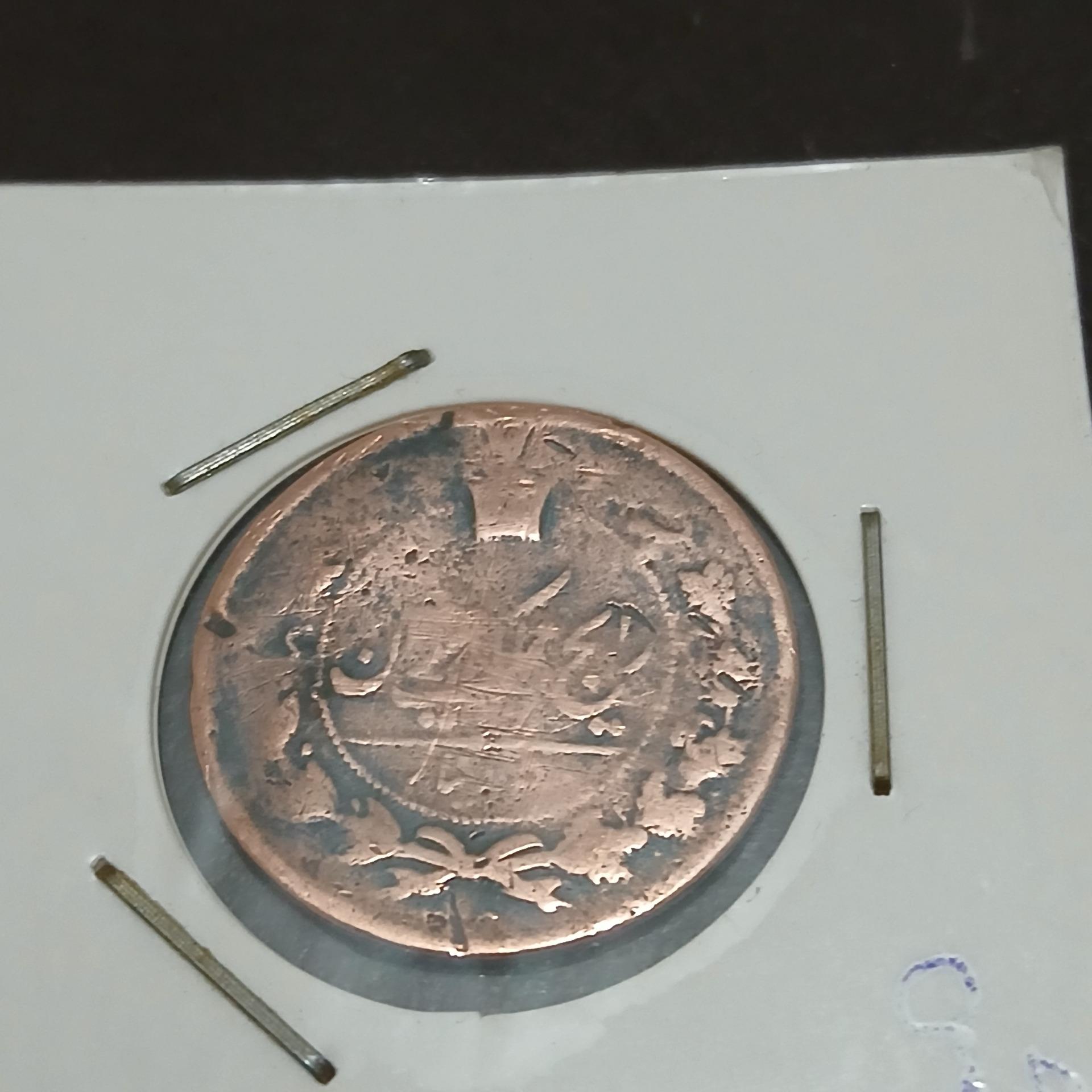 سکه ارزشمند50دینار مسی ناصرالدین شاه با ارور چرخشی وبدون تاریخ