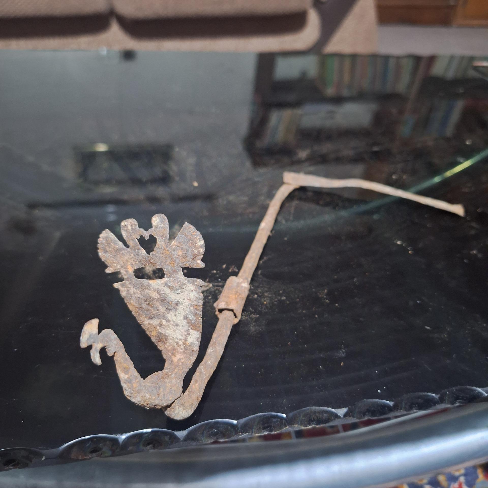 دسته هواکش شومینه (بخاری ) قدیمی زیبا کار دست البته بلحاظ قدمت بالازنگ زدگی دارد که من دستکاری نکردم