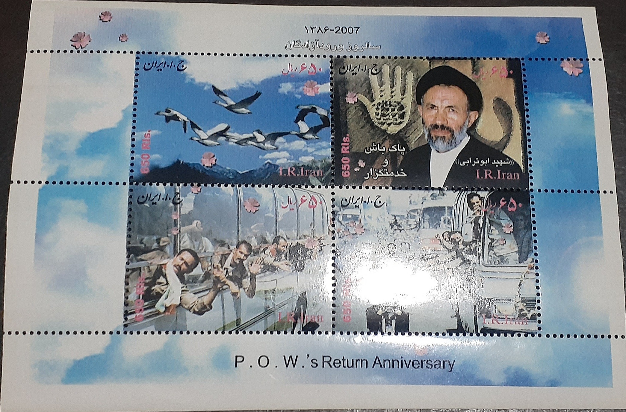 4 عدد مینی شیت جمهوری مطابق تصویر شامل 2 مینی شیت ورود آزادگان، 1 عدد مینی شیت موزه عبرت و 1 عدد مینی شیت سالگرد پیروزی انقلاب اسلامی.مینی شیت جمهوری اسلامی 1 خط وسطش داره که در تصویر مشخصه.