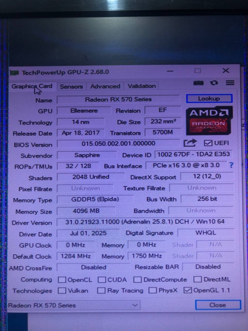 سلام گرافیک sapphire nitro plus 570 4gb نوع پردازنده رو نمی دونم زدم AMD . معیوب هست تصویر رو خط دار میاره یعنی روی دکس تاب خط های عمودی میاد . عکس سوم و پنجم هم گذاشتم مربوط به تست گرافیکی هست مرجوعی ندارم لطفا در خرید خود دقت کنید هر سوالی باشه در خدمتم