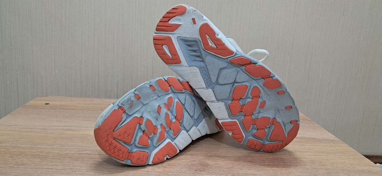 کتونی سالم و بدون ایراد و فقط کفی به خورده کارکرد داره که داخل تصویر مشخصه ولی زدگی یا پارگی نداره کفی  و به همین خاطر از قیمت اش کم کردم