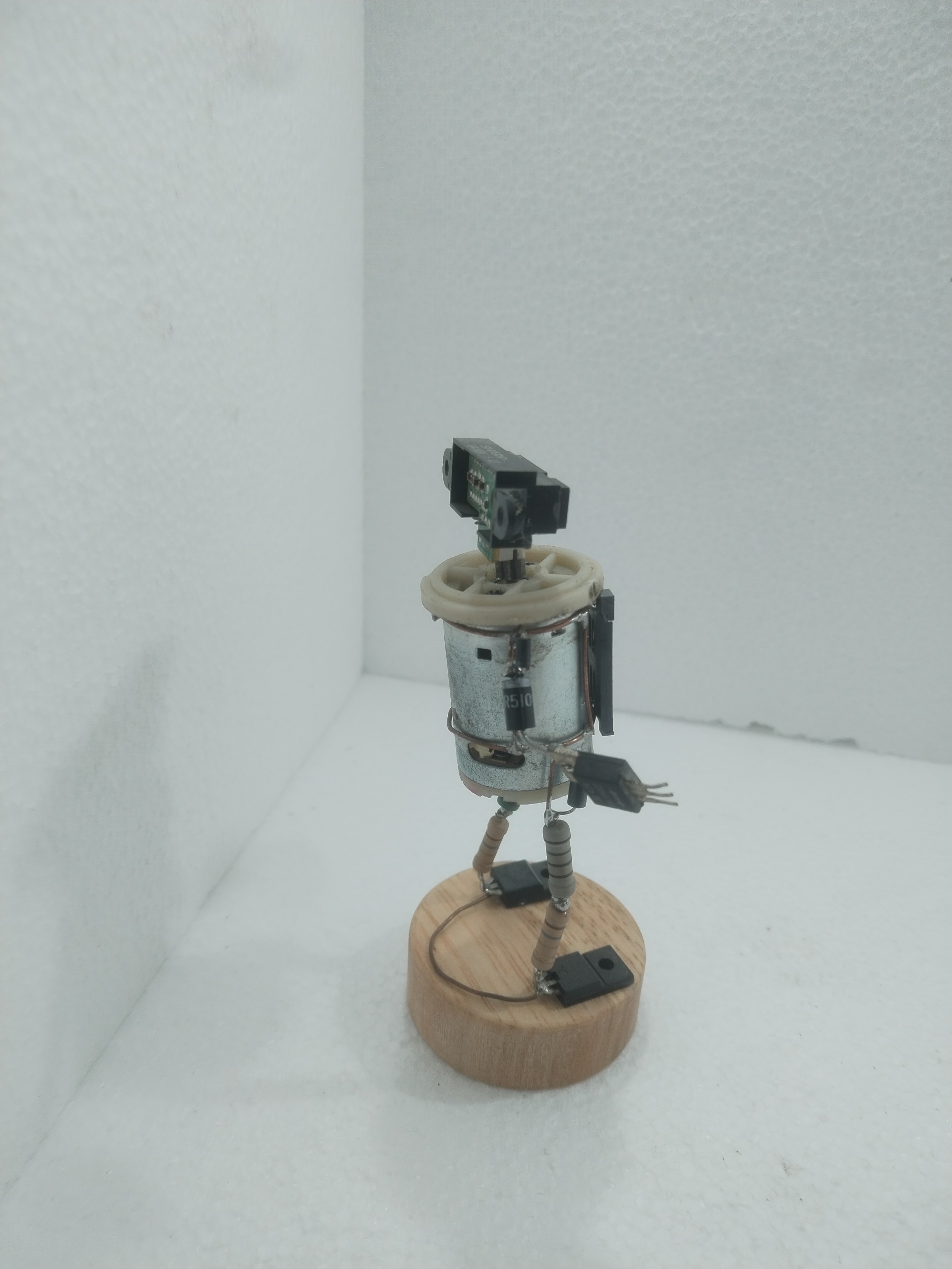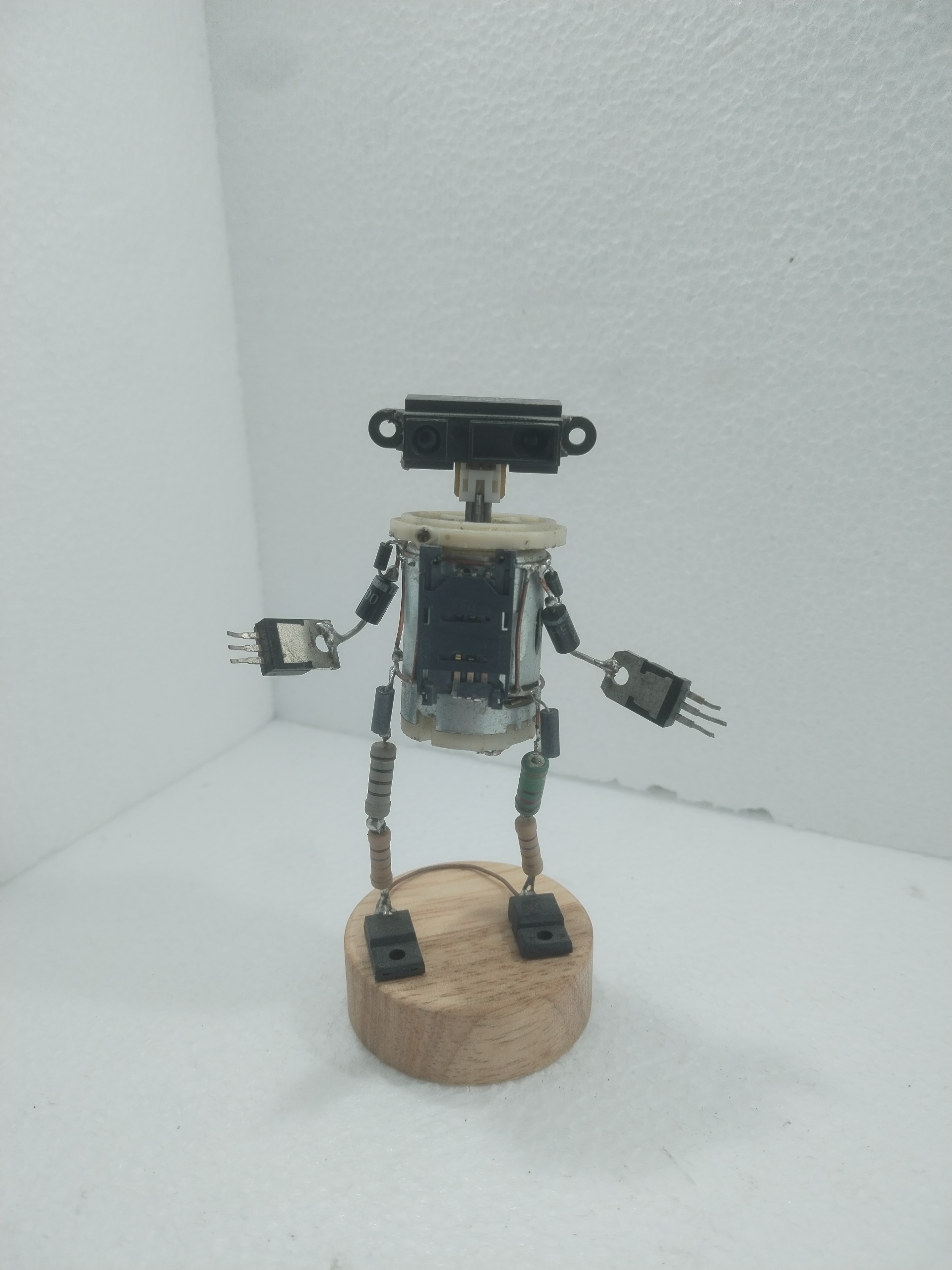 مجسمه مینیاتوری ربات انسان نما تماما با قطعات الکترونیک ساخته شد،در در عکس ها تغییر حالت دست ها مشخص شده و قابل تغییر هست،حالت سلام یا متعجب بودن ربات