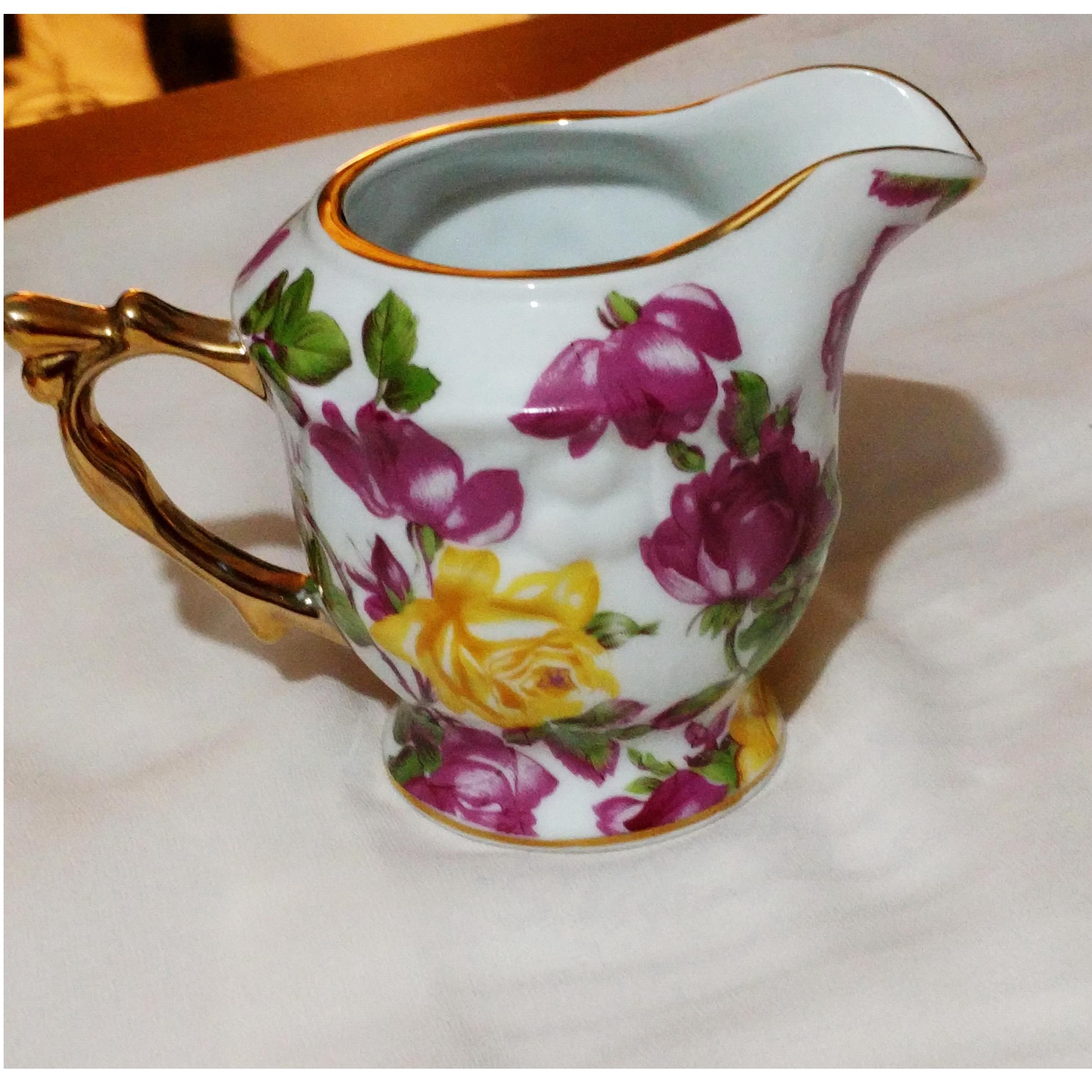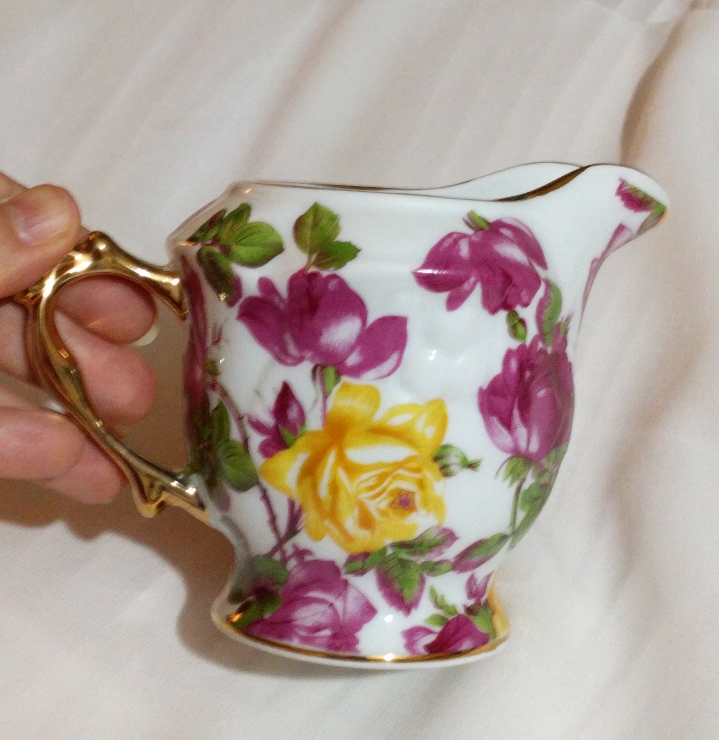 سس خوری گلدار دسته طلایی زیبای لب طلا