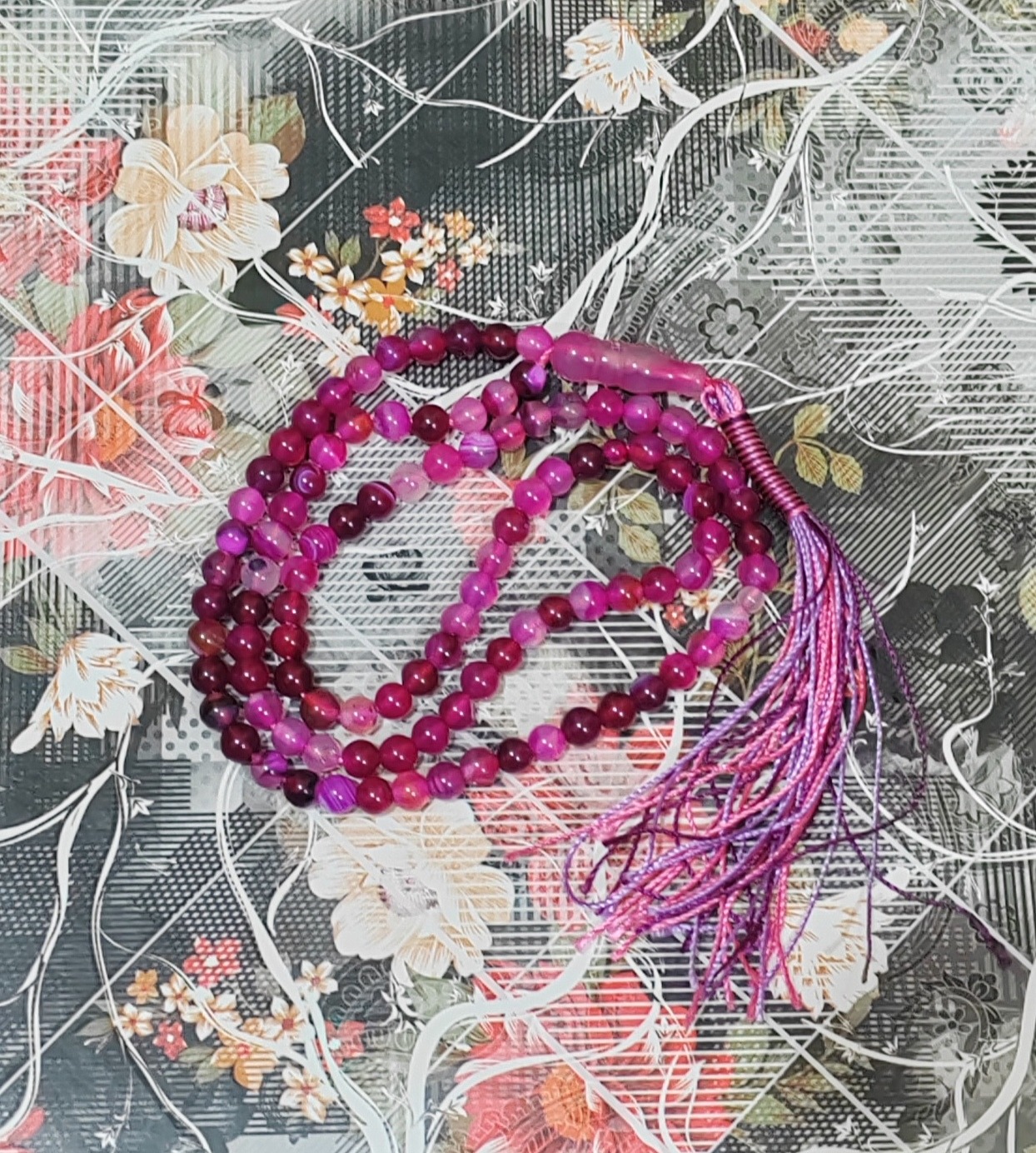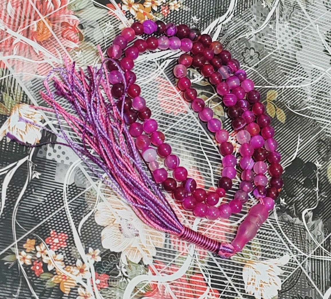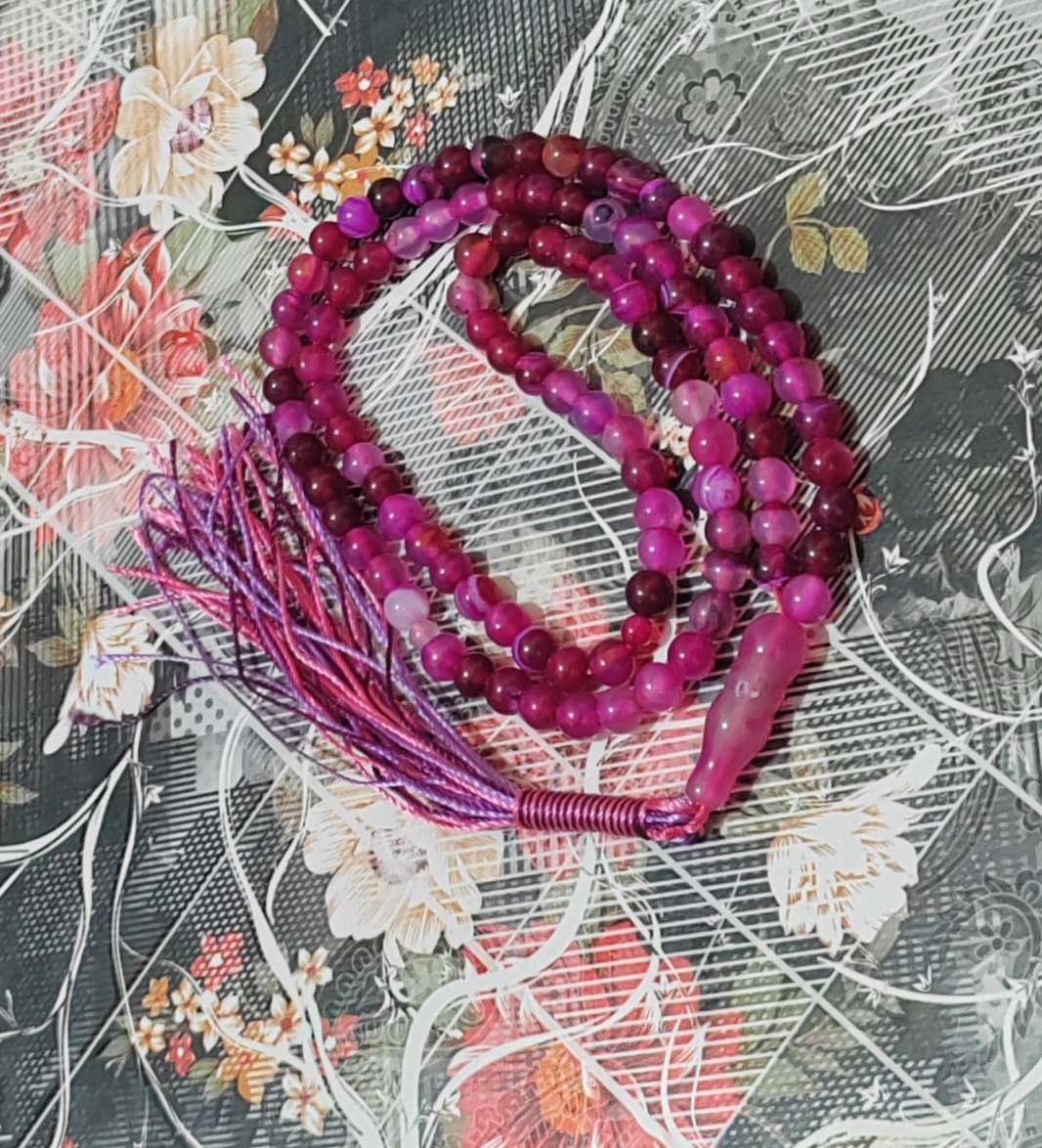 تسبیح سنگ عقیق صورتی 101 دونه سایز 6 کد 1