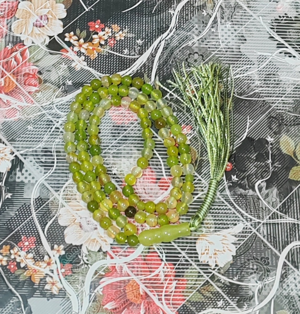 تسبیح سنگ عقیق سبز 101 دونه سایز 6 کد 1