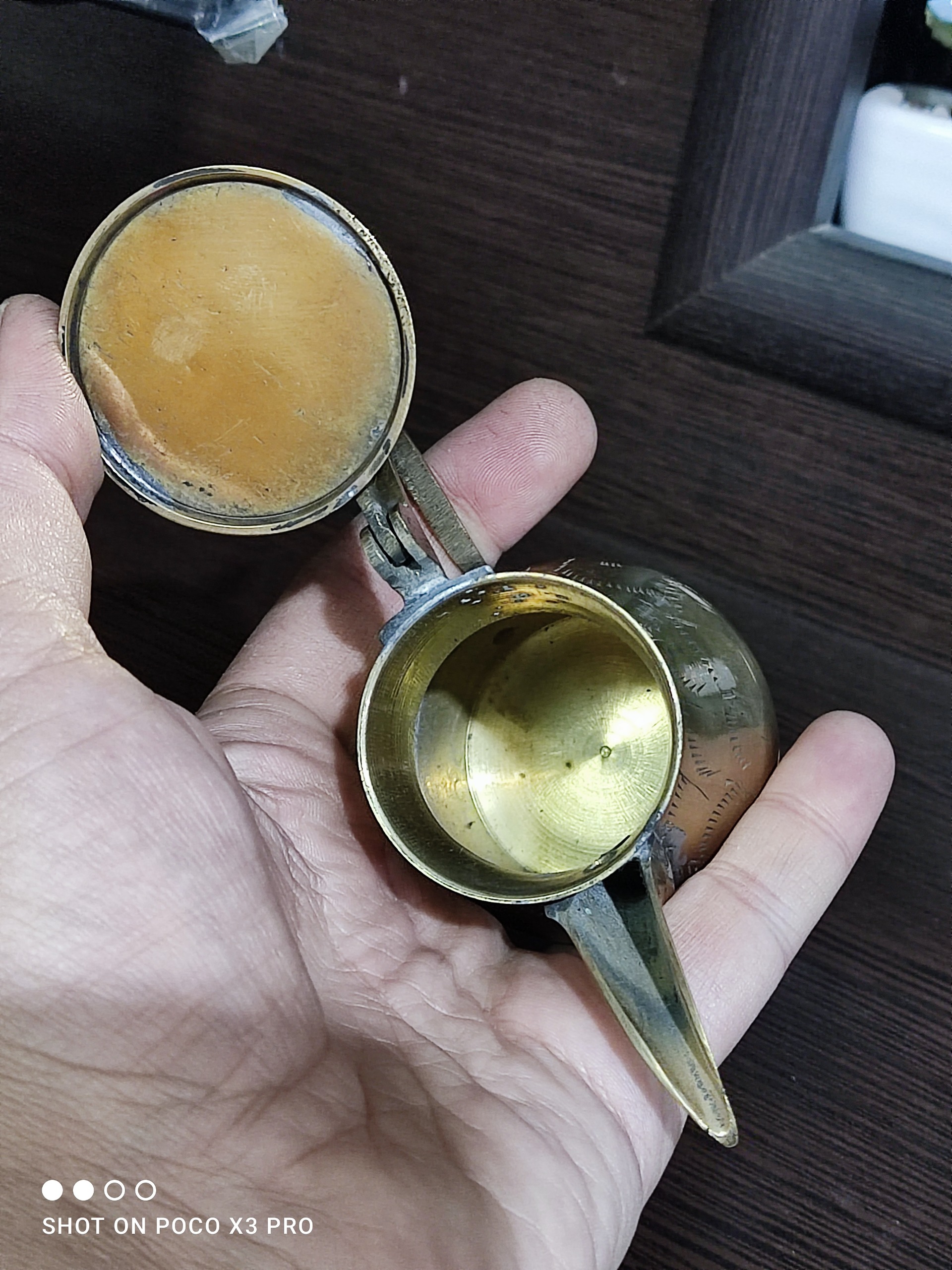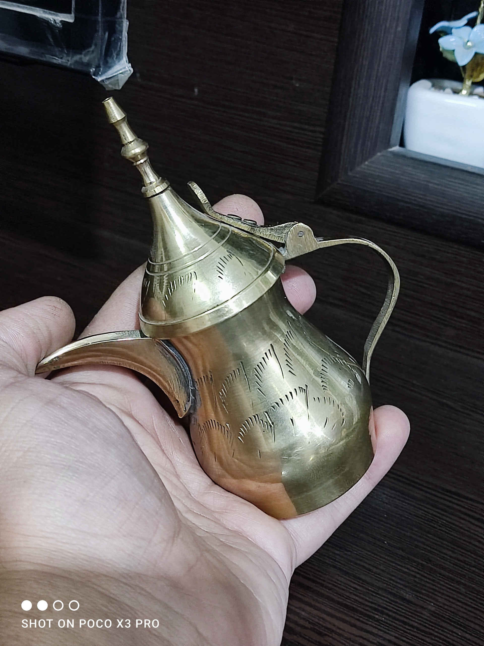 دله یا قهوه جوش برنجی قدیمی نو نو سالم و تمیز و بک. سایز کوچک