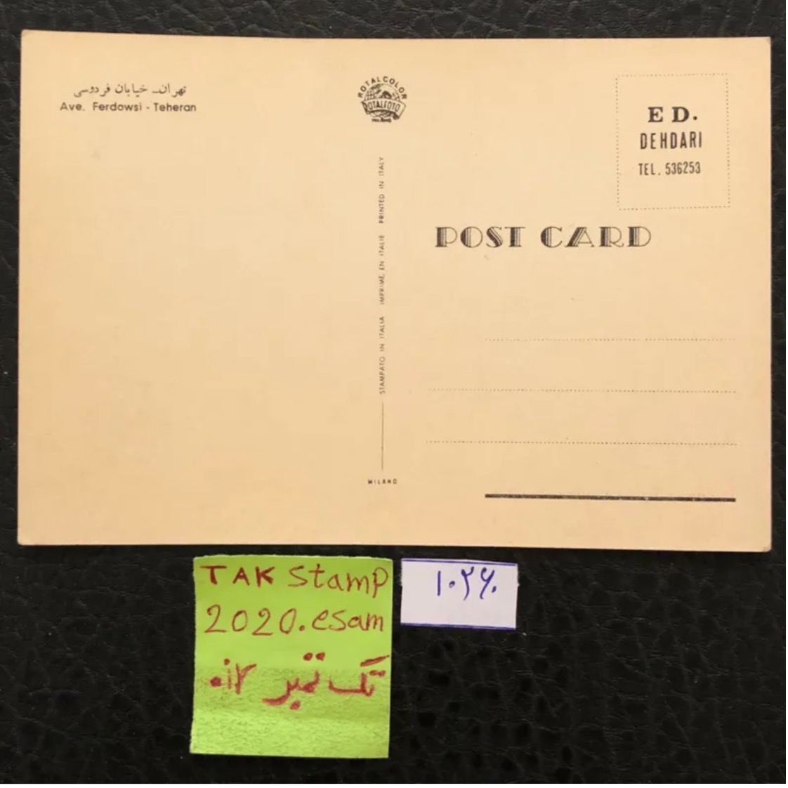 کارت پستال میدان فردوسی تهران،ایتالیا،پهلوی