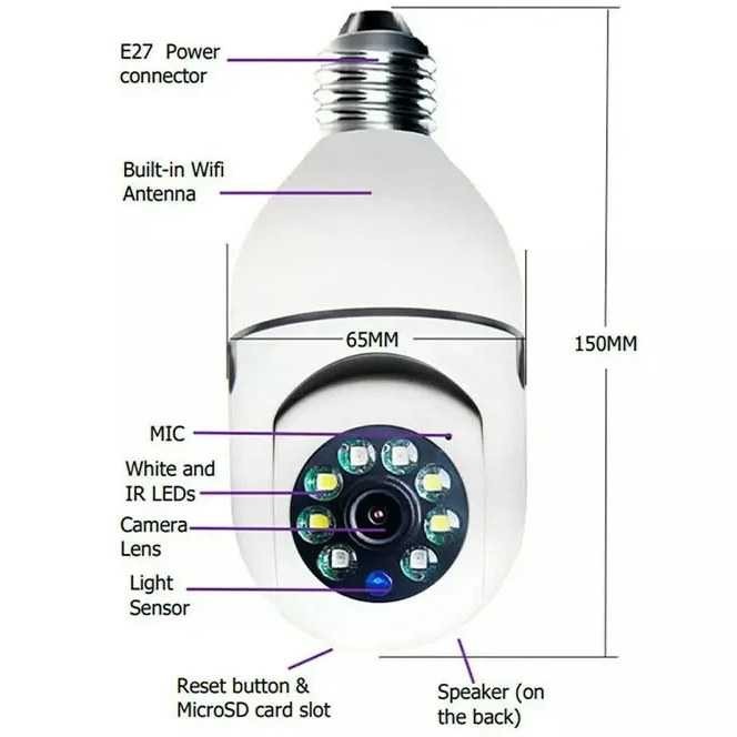 دوربین لامپی چرخش 360 درجه قابل کنترل با نرم افزار