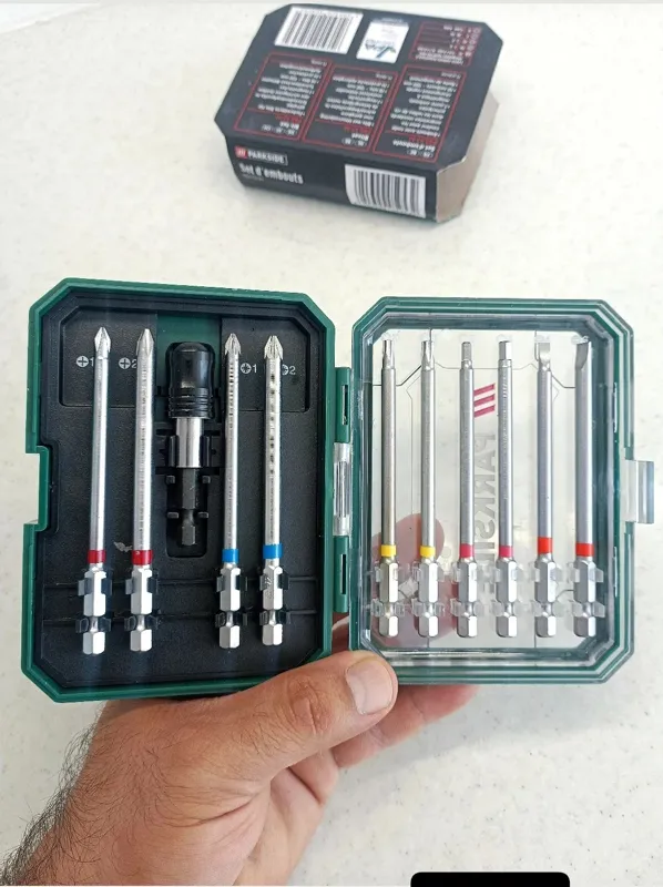 ست ده عددی بیت های کروم ده سانتی (بیت های کاربردی) بهمراه یک عدد رابط بیت تعویض شو هولدر مغناطیسی و بهمراه جعبه ی زیبای مربوطه