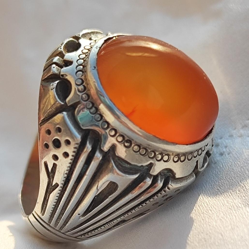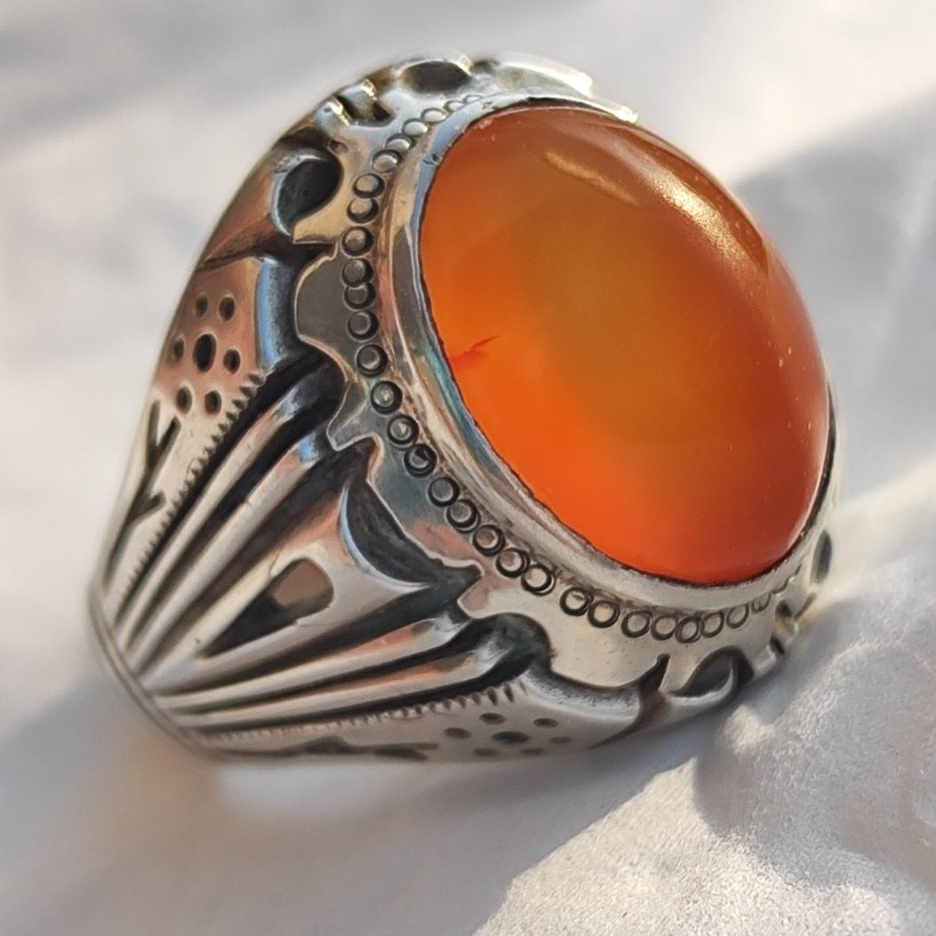 انگشتر عقیق یمانی دست ساز تراش عبدالرزاقی