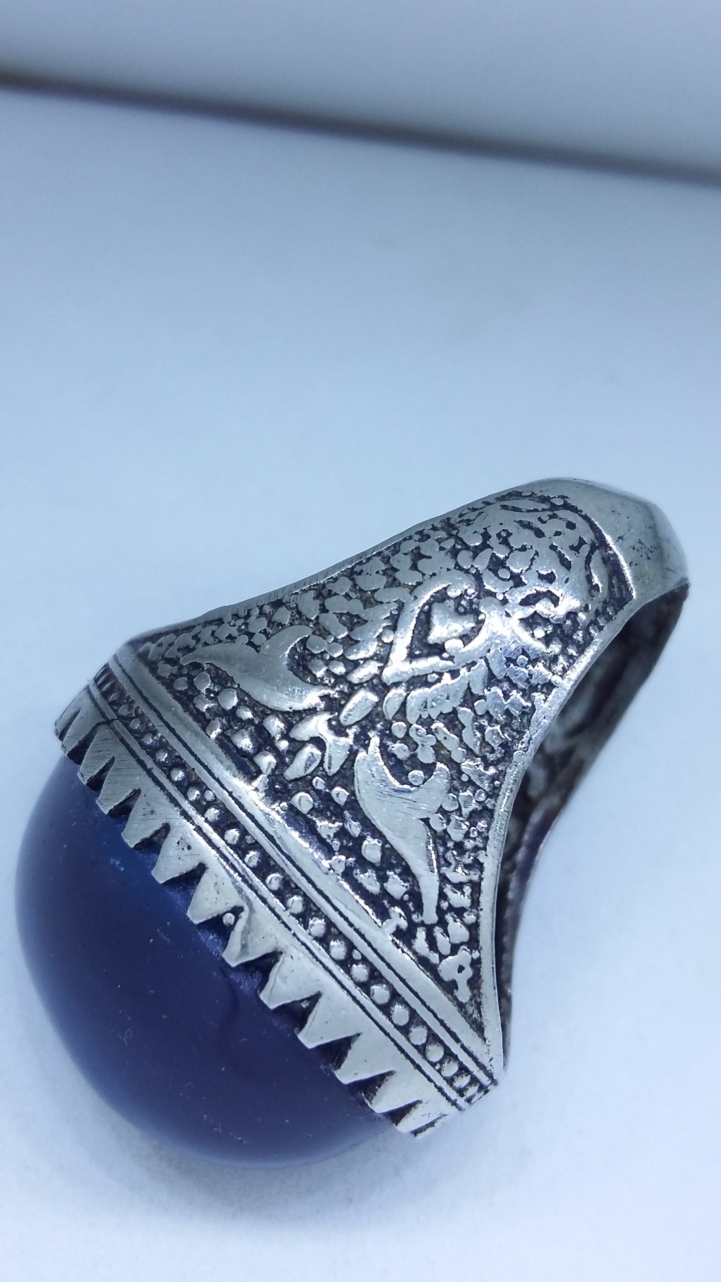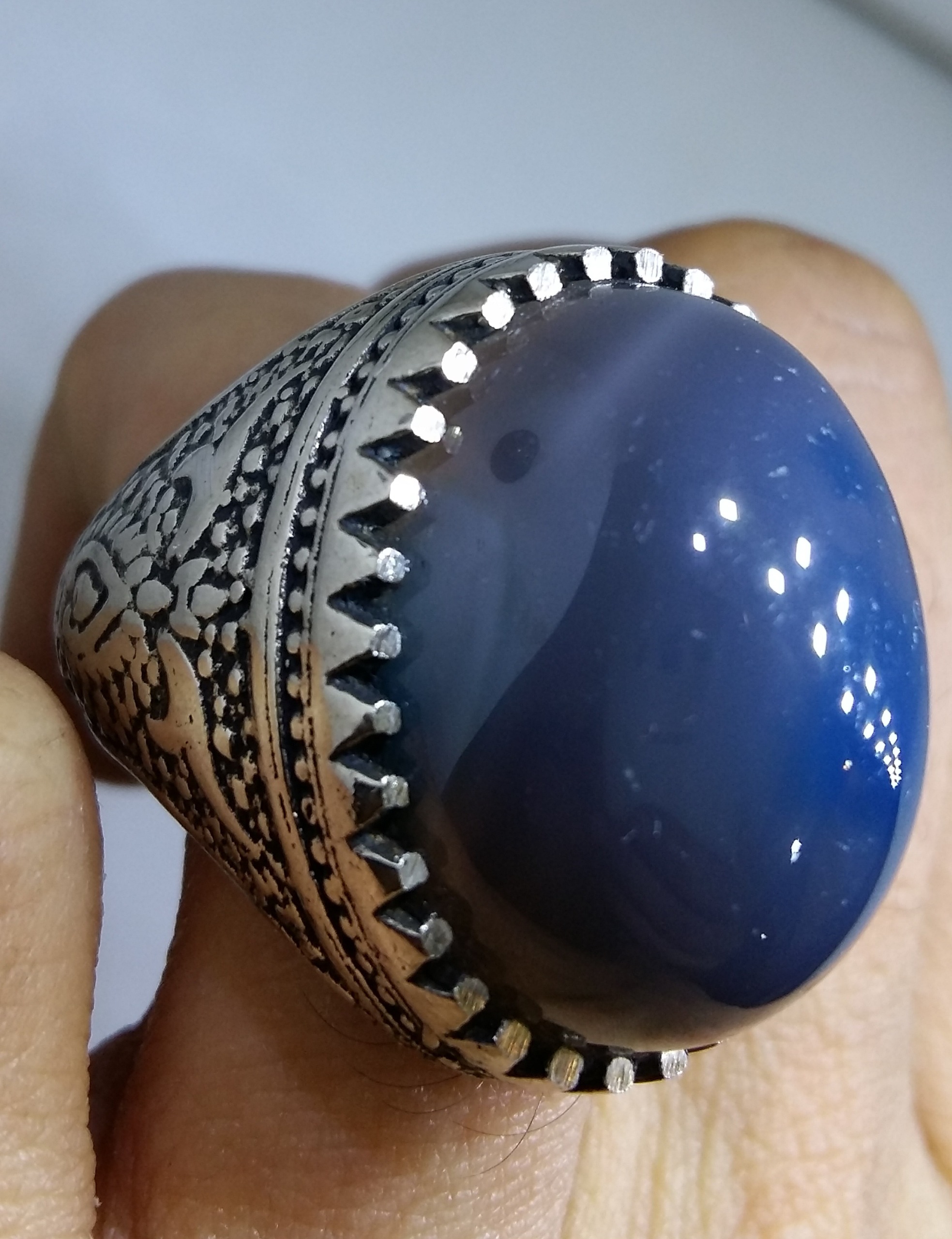 انگشتر قلمزنی فاخر عقیق کبود کلوخه یمنی اصیل
