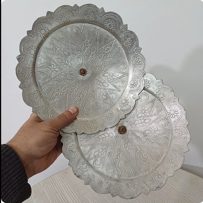 دوعدد شیرینی خوری مسی پایه دار به قطر 20سانت وبه ارتفاع10سانت