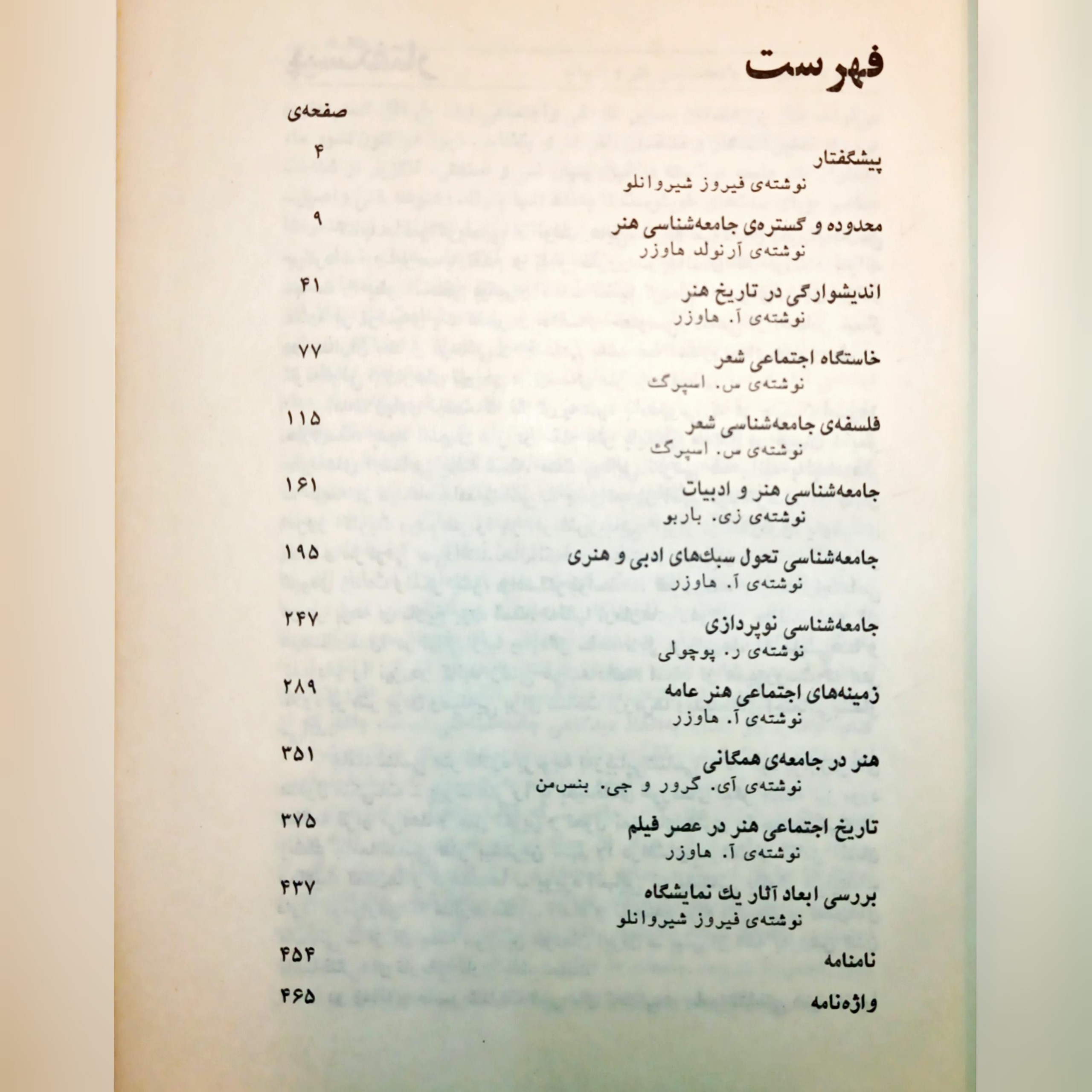 مدت زیادی نیست که نگرش به هنر،به مفهومی که در جهان امروز جاریست،پدید آمده و هنر در مقام هنر پایگاهی مستقل در میان سایر مقوله های اجتماعی یافته است.مدت پیدایی نگرشی همه جانبه به ابعاد هنر _خاصه از دیدگاه جامعه شناسی_ به مراتب از آن هم کوتاه ترست.در جهان امروز اکثریت مردم هنر را جز آفرینش زیبایی،ابزار ارتضای ذوق،یا وسیله ی تفنن و سرگرمی نمیدانند.