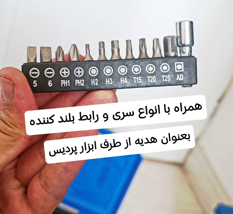 روی هر دستگاه پک 10 عددی انواع سری پیچگوشتی شارژی با تبدیل و رابط تقدیم میشود
