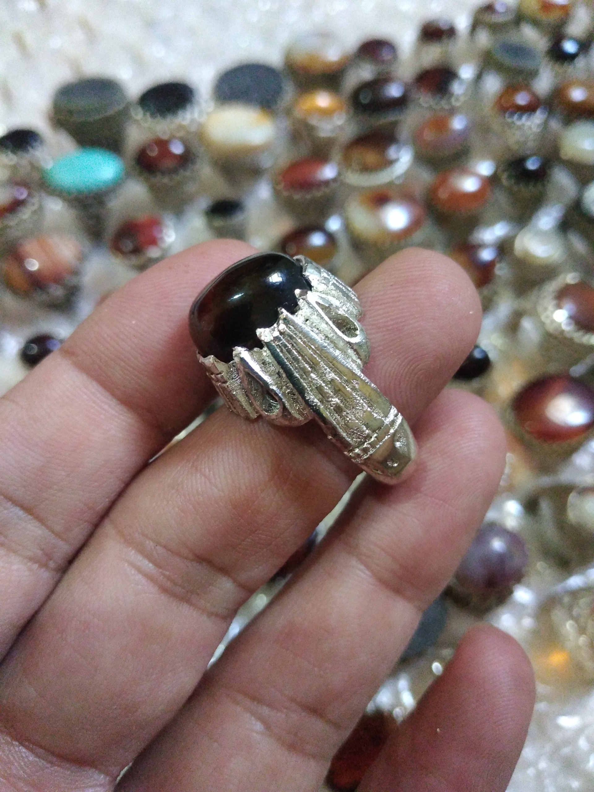 انگشتر قدیمی عقیق روکش نقره