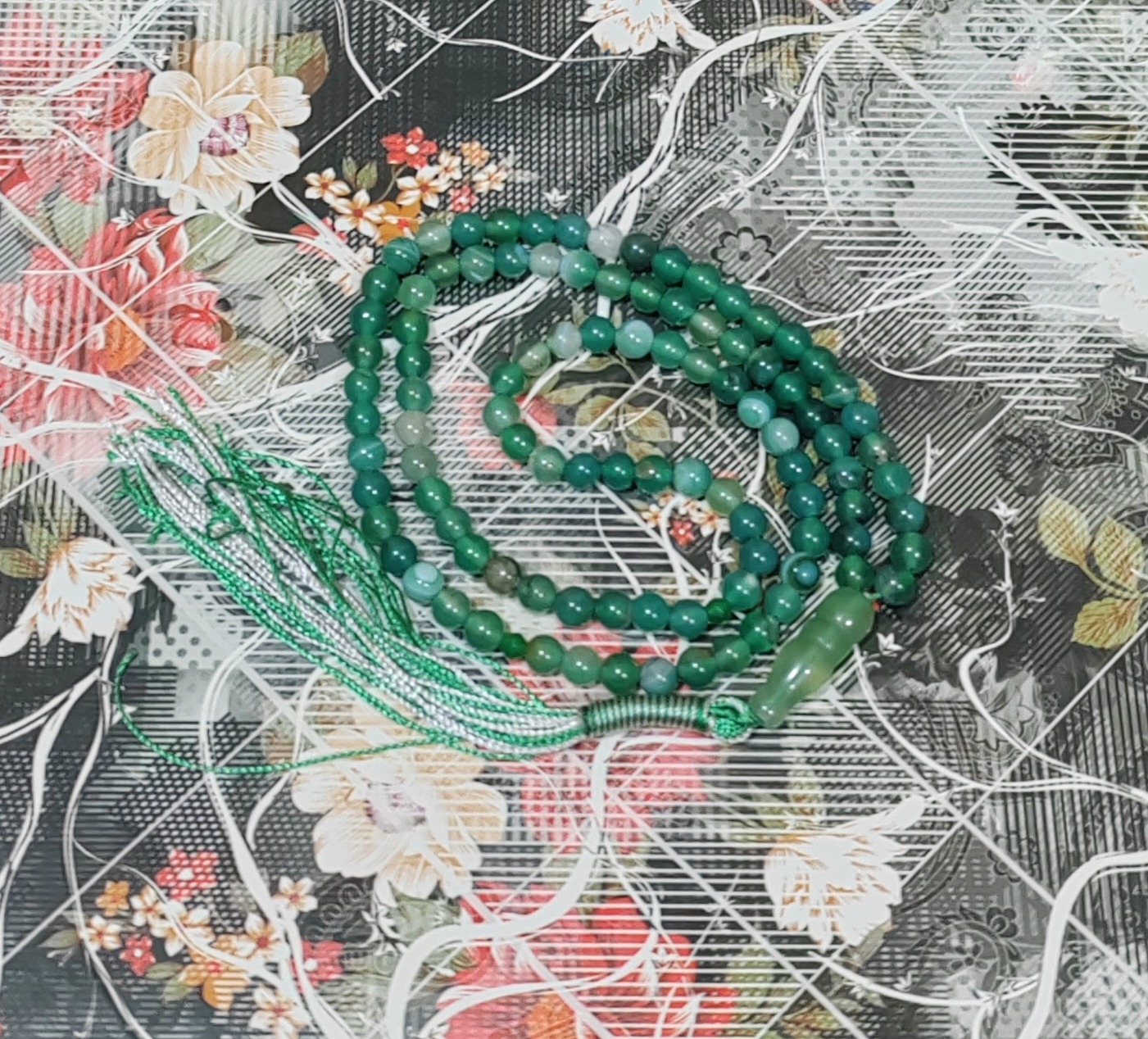 تسبیح سنگ عقیق سبز 101 دونه سایز 6 کد 2