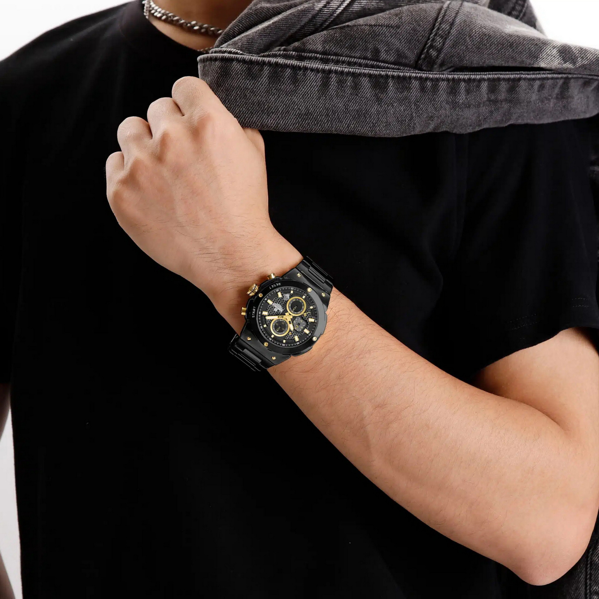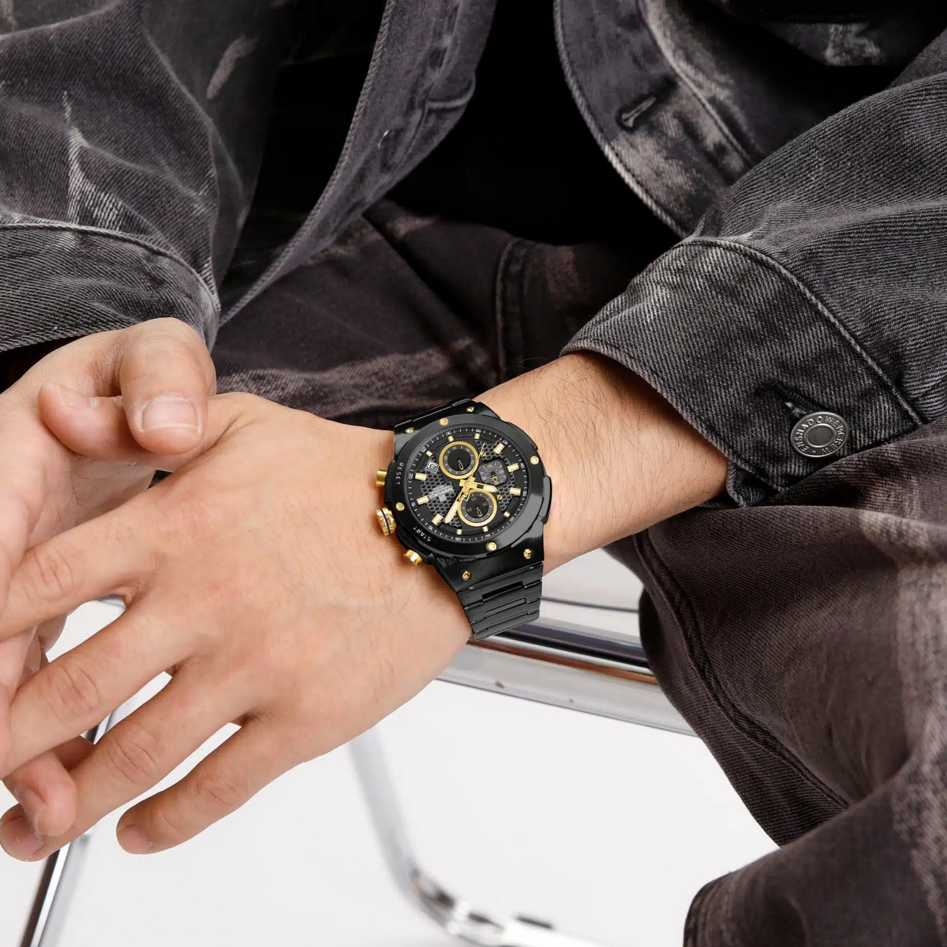 بدنه و بند استیل فلزی مشکی رنگ ثابت ضخیم با دوام