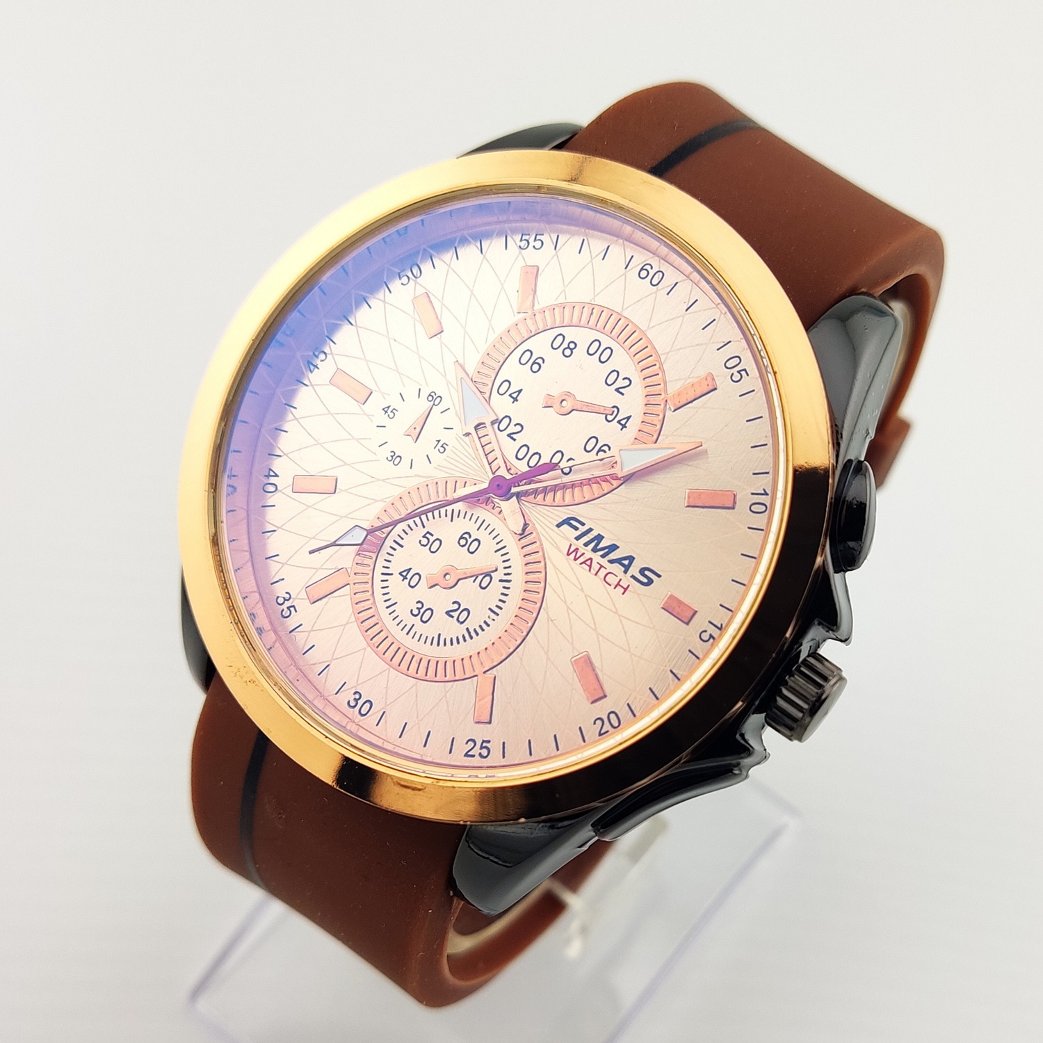 ساعت مچی عقربه ای مردانه FIMAS اسپرت دارای یک موتور قدرتمند کوارتز با صفحه طرح سه موتوره که عقربه های کوچک روی صفحه تزئینی و غیرفعال هستند