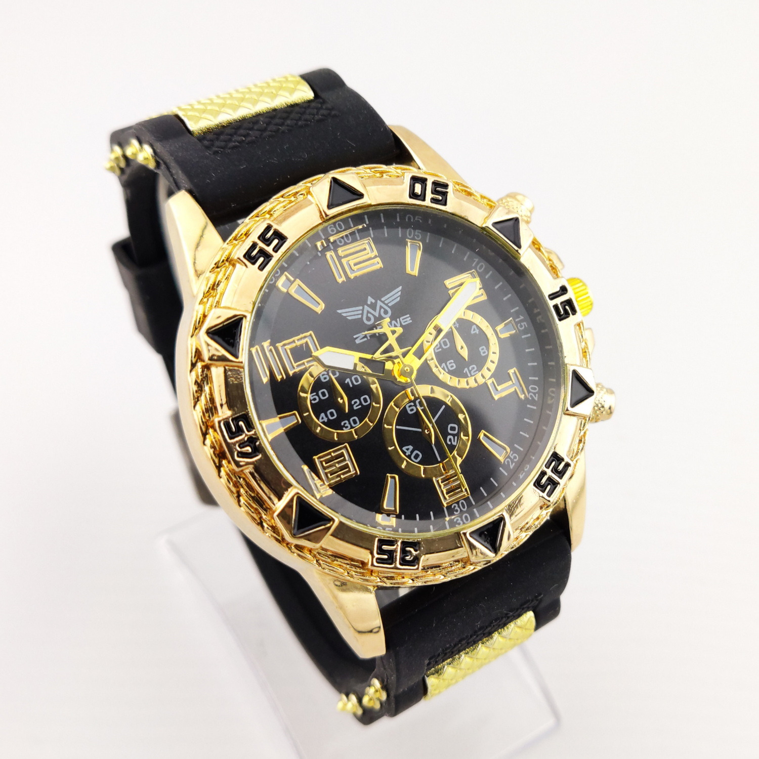 بدنه استیل طلایی و بند سیلیکونی طرحدار اسپرت