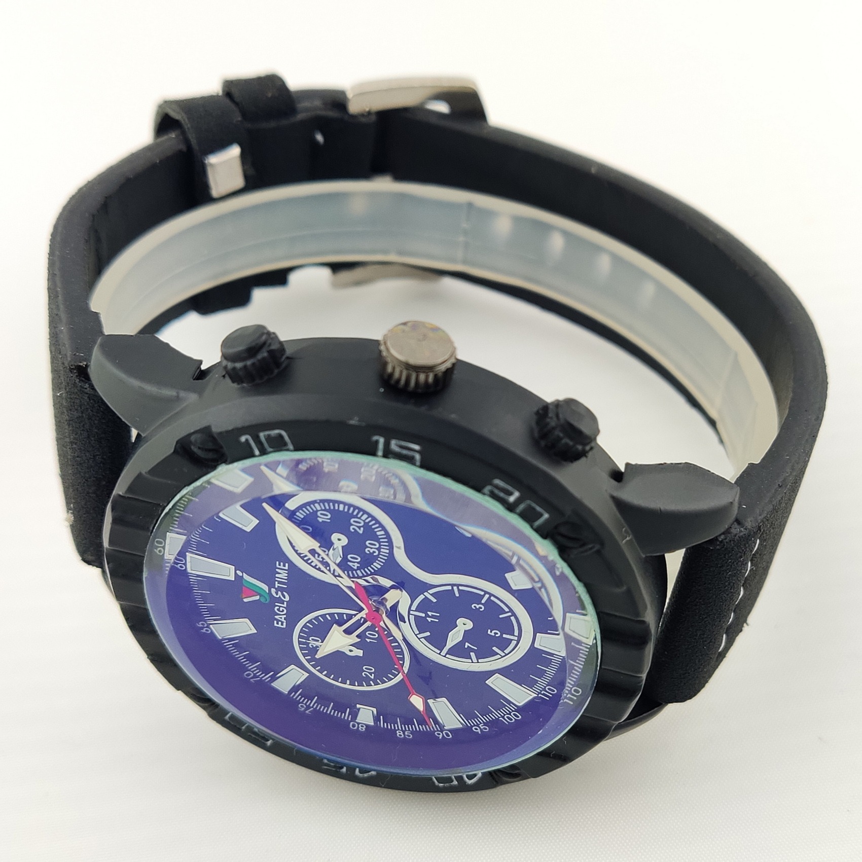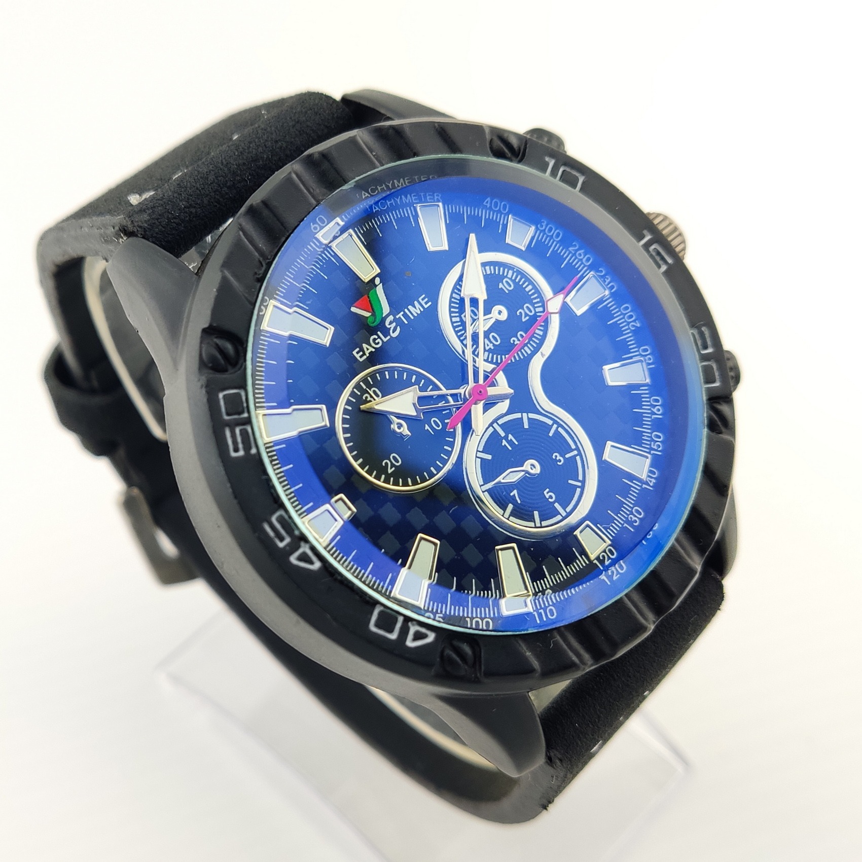 ساعت عقربه ای مردانه EAGLETIME دارای یک موتور قدرتمند کوارتز است که عقربه های کوچک روی صفحه تزئینی طرح سه موتوره و غیرفعال هستند