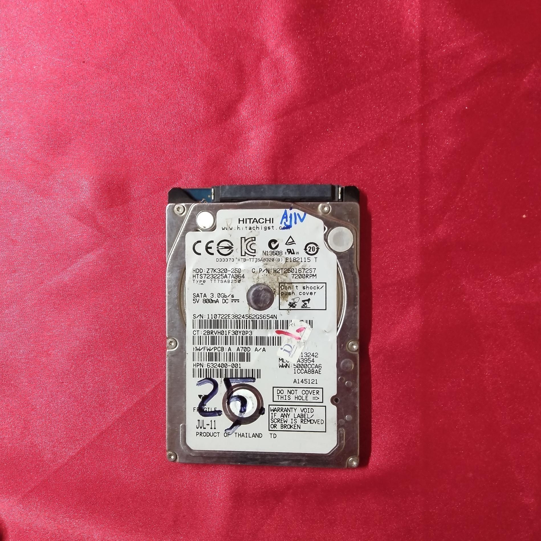 هارد لبتاپ HITACHI ظرفیت 250GB کد Aj17
