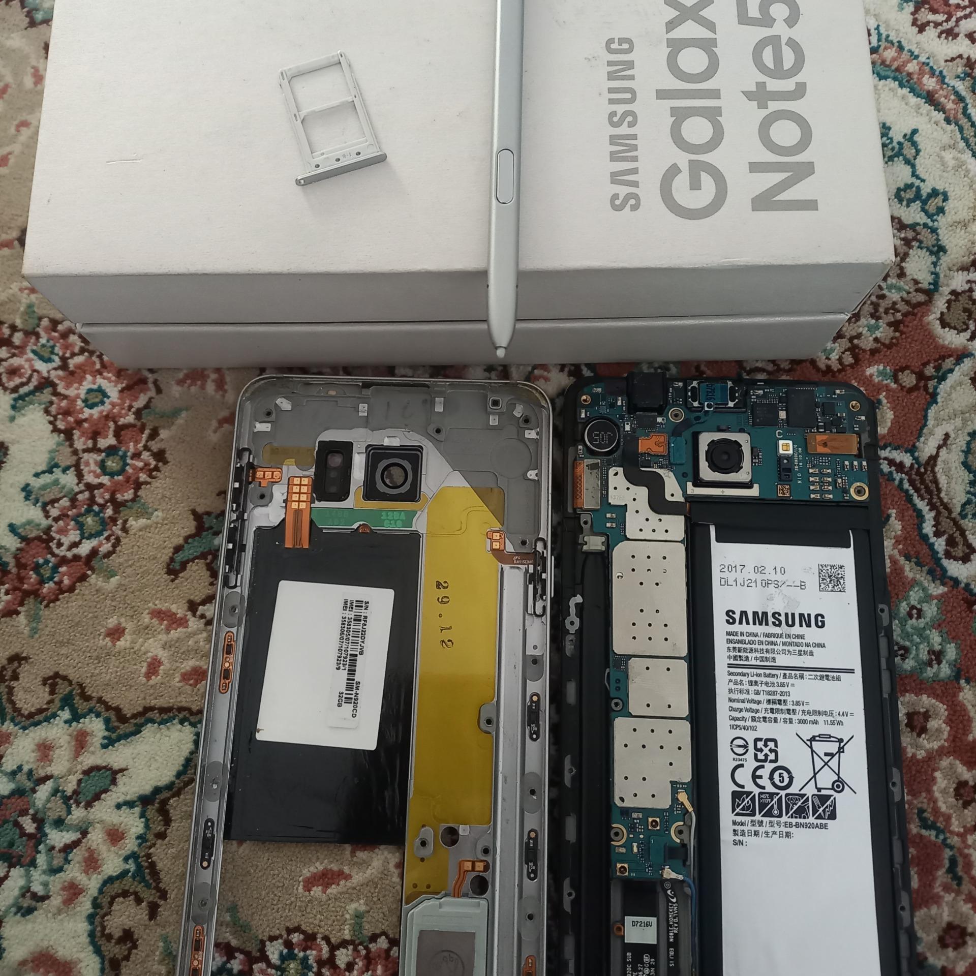 گوشی سامسونگ نوت 5اصلی بدون ضربه وفریم تمیز وسالم درب پشت ندارد .تاچ ال سی دی خراب برد سالم سالم وانتقال مالکییت دارد به همراه کارتن وچیزی که تو عکس میبینید همین طوری فرستاده میشه کالا به هیچ عنوان مرجوعی ندارد چون تا امروز دستم کار میکرد یه دفعه ال سی دیش رنگ پس داددیگه هزینه نمیخوام بکنم