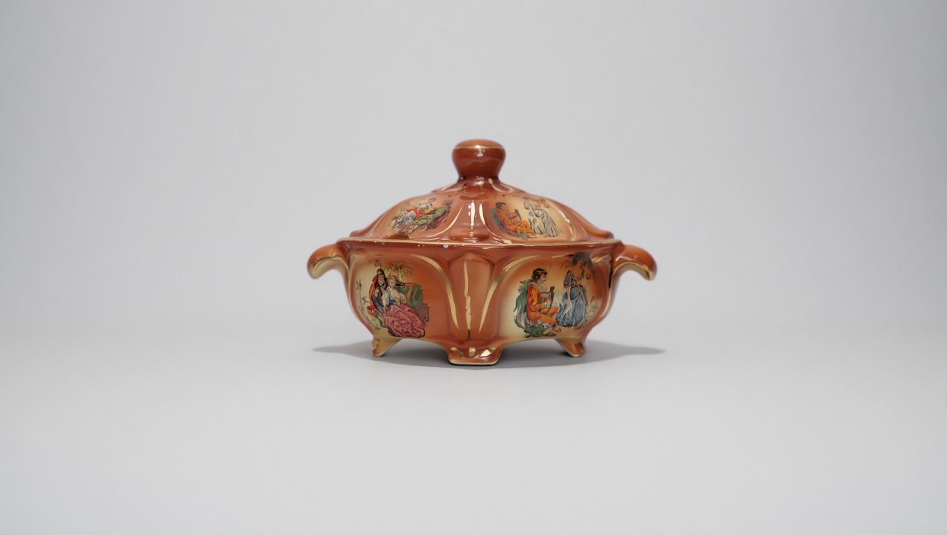 سوپ خوری سرامیکی خارجی قدیمی با طرحهای زیبا به طول 38 و عرض 23 سانت.چندتا پریدگی ریز دارد.